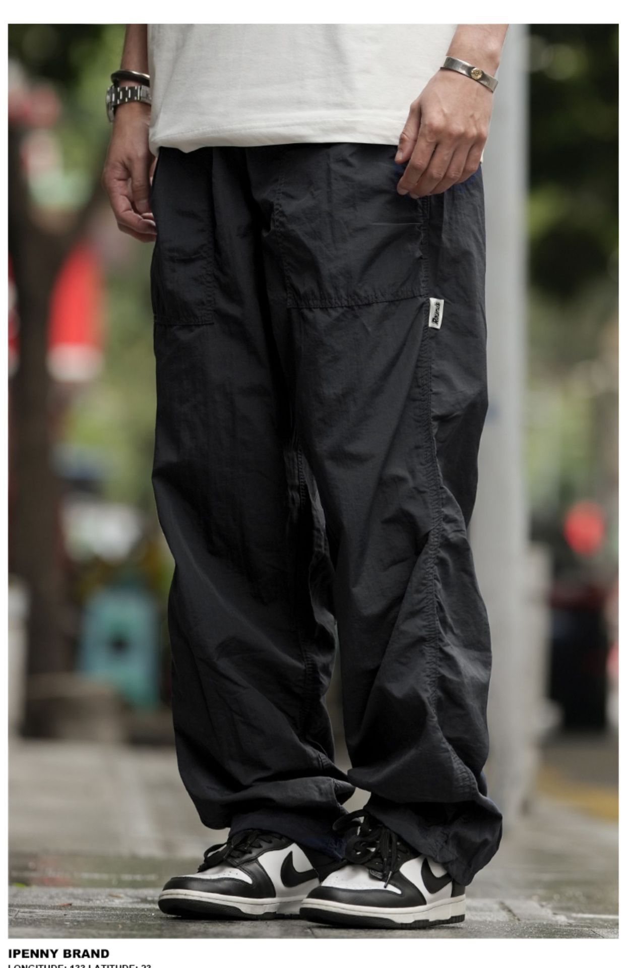 2025 봄과 가을 새로운 스타일 등산 야외 미국 낙하산 바지 남성 느슨한 충전 바지 일본식 속건성 기능성 작업복스토어 가기