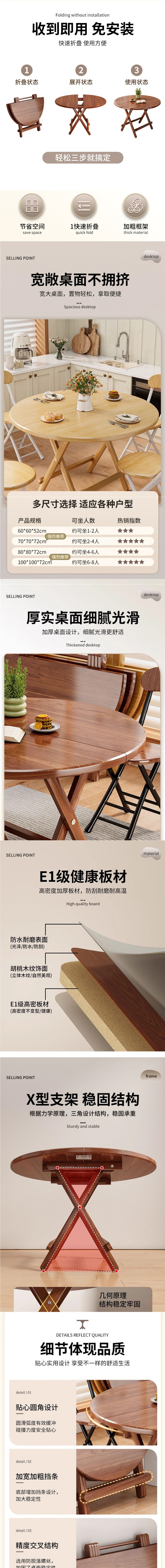 인터넷 연예인 접이식 테이블 식탁 가정용 소형 식탁 야외 휴대용 간단한 스톨 작은 원형 테이블 식사 사각형 테이블