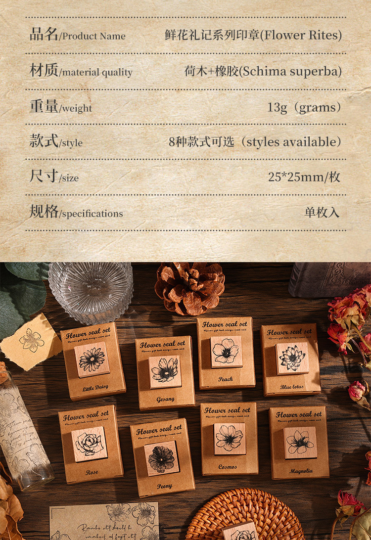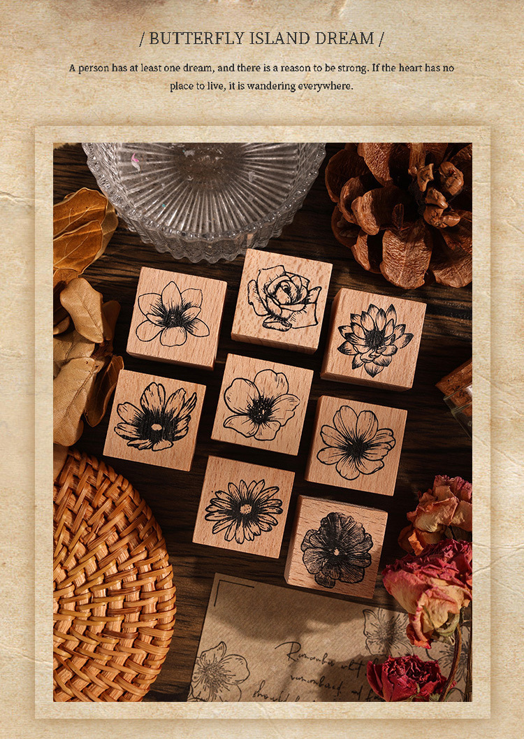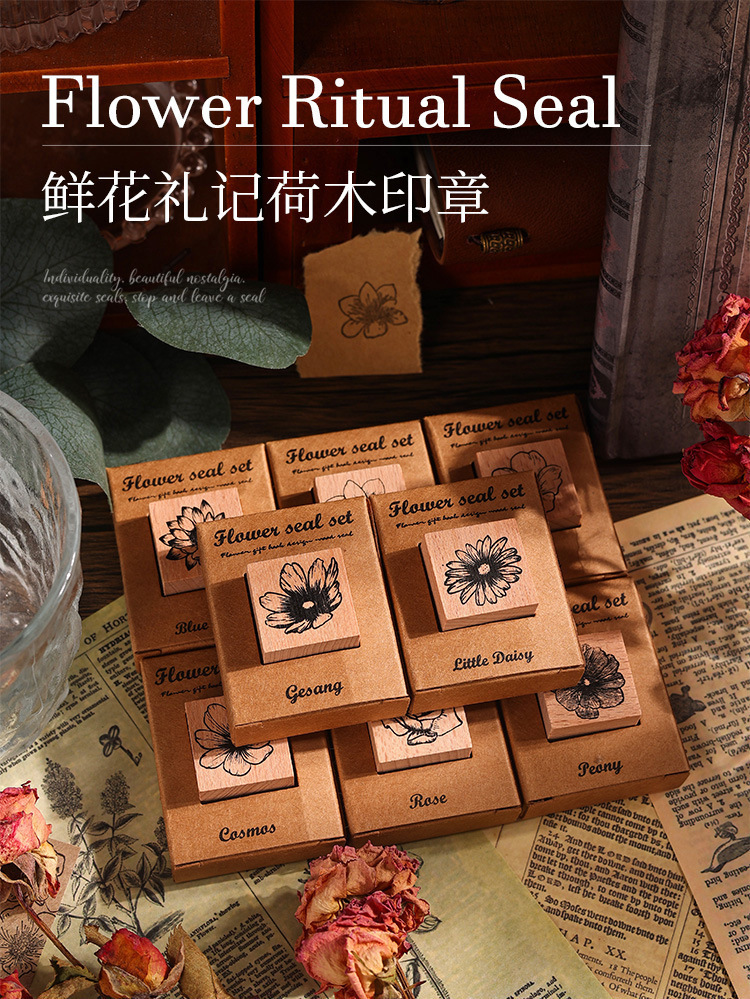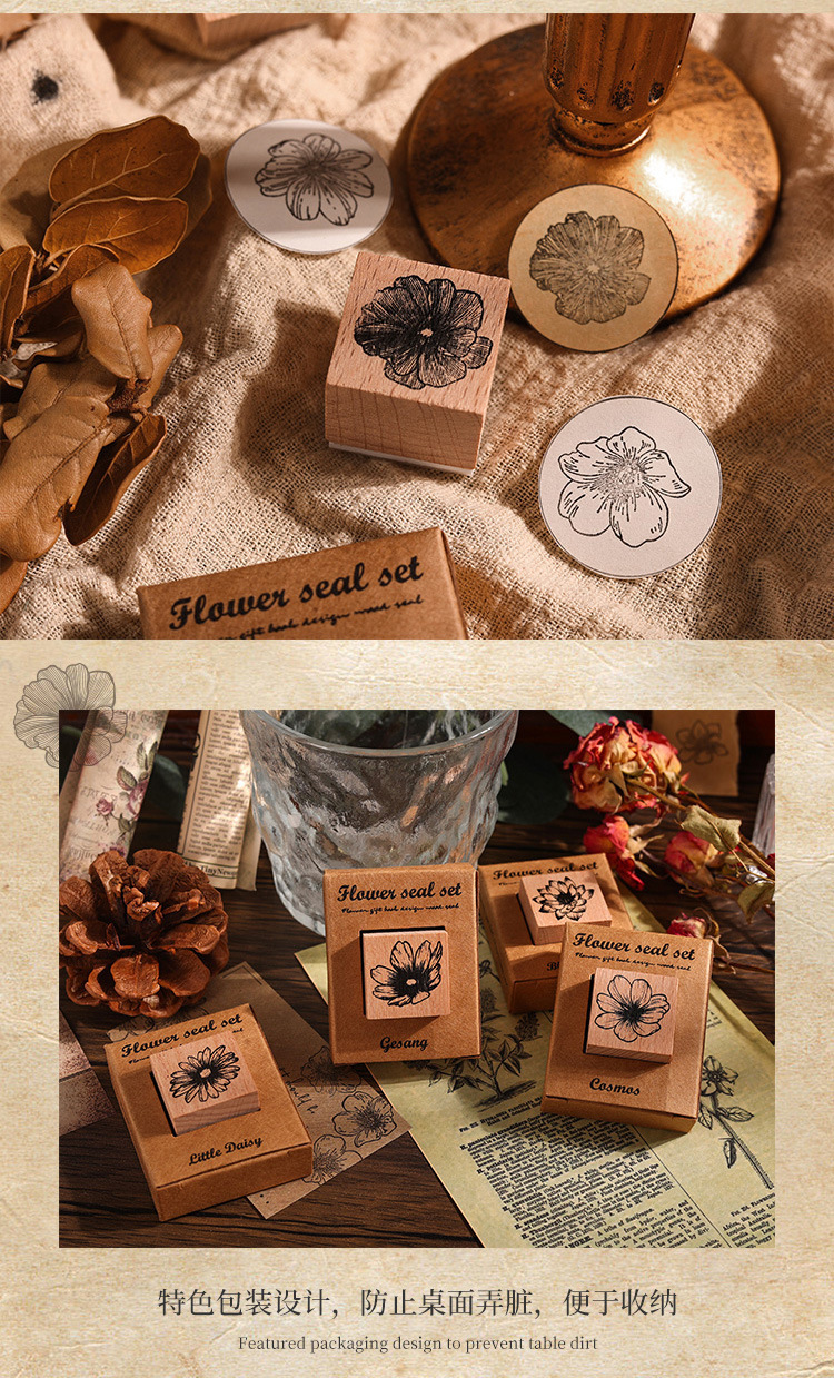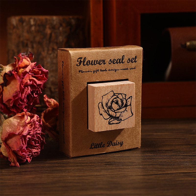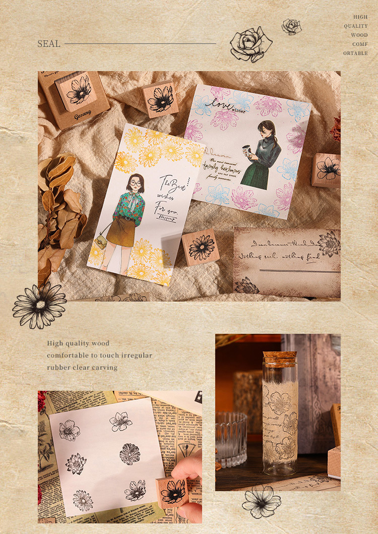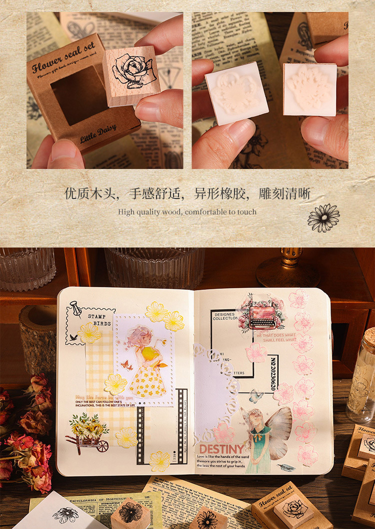 국경 간 꽃 선물 시리즈 핸드북 스탬프 복고풍 나무 어린이 스탬프 식물 및 꽃 재료 인쇄스토어 가기