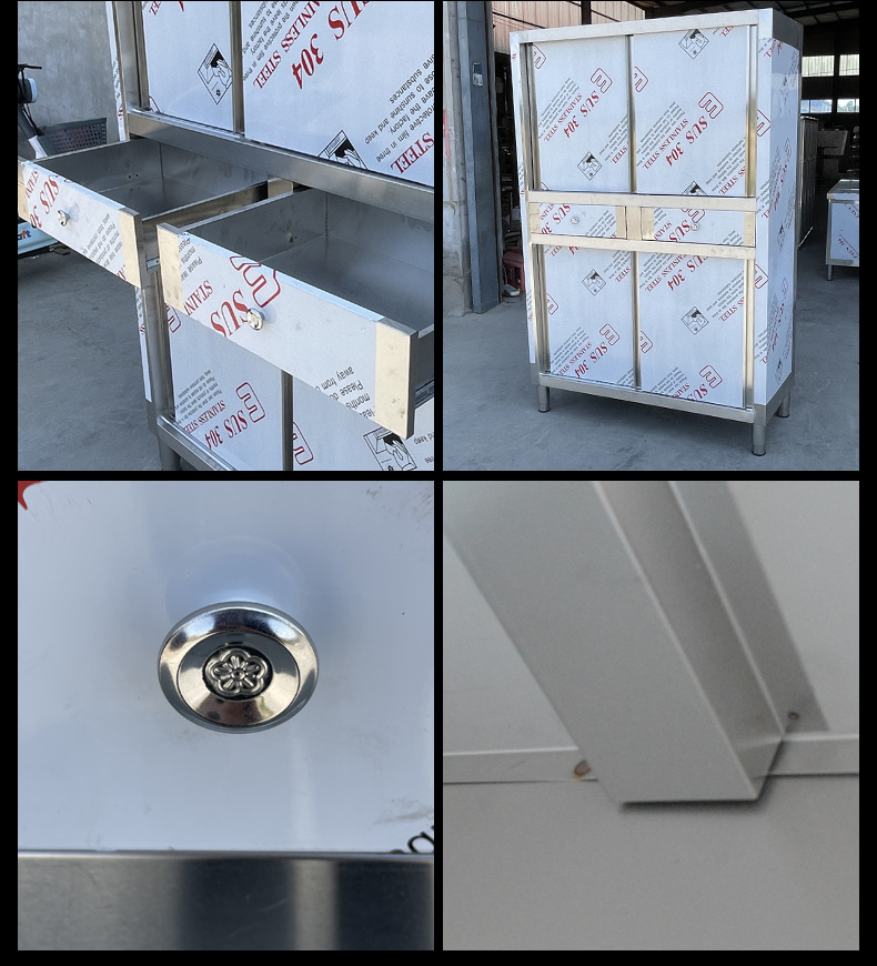 두꺼운 스테인레스 스틸 찬장, 식품 캐비닛, 상업용 청소 캐비닛, 4 도어 수직 캐비닛, 슬라이딩 도어, 주방 보관 캐비닛, 맞춤형스토어 가기