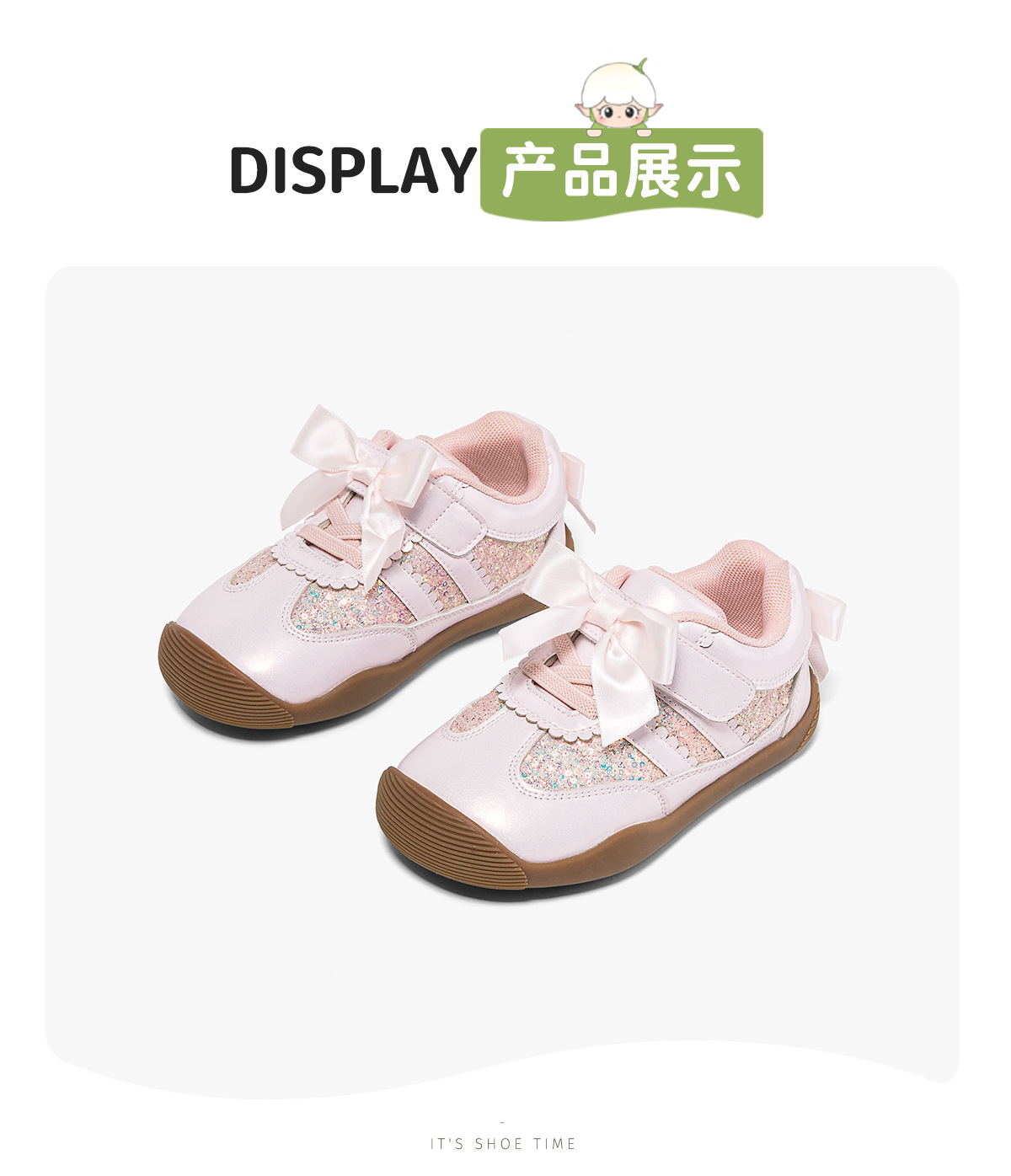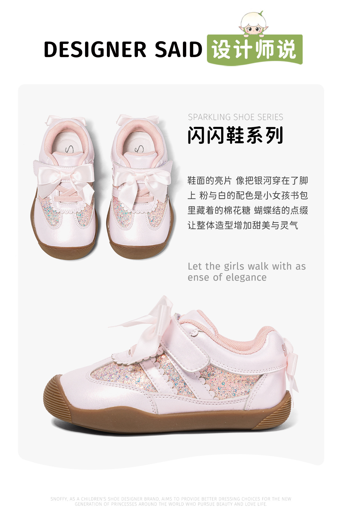 [쇼핑몰에서 같은 스타일] Snafy 여아 유아 신발 2025 가을 신상 Baotou 통기성 어린이 반짝이 신발스토어 가기