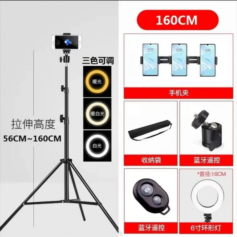 • [클립 + 팬/틸트 + 리모콘 + 필라이트 6inch개] 삼각대(3개 위치) [브래킷 1.6m개]✓