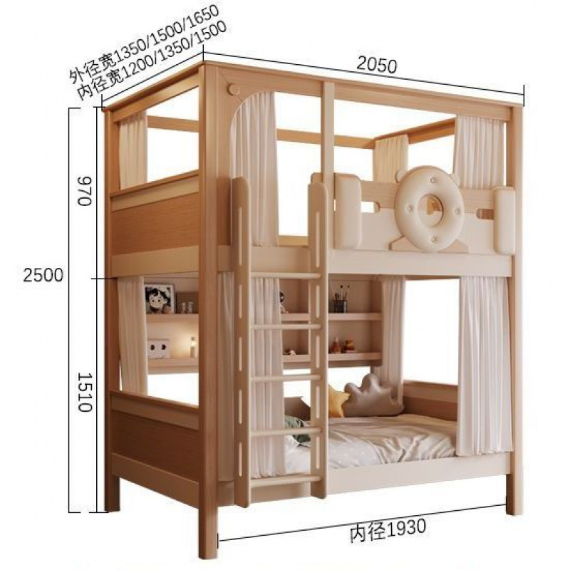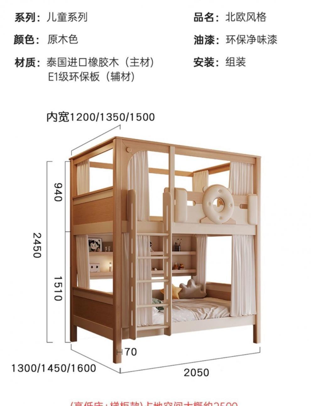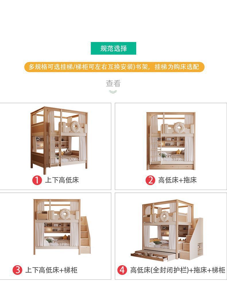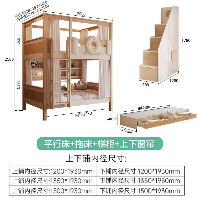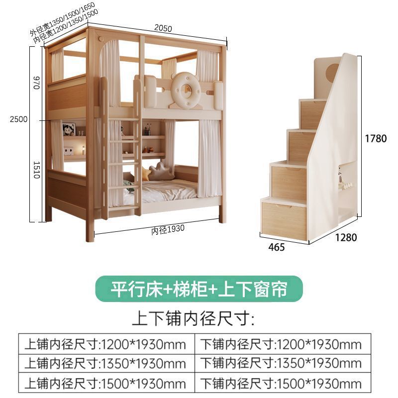 • 이층침대 + 사다리장 + 겸대 + 무료 매트리스 + 커튼*2