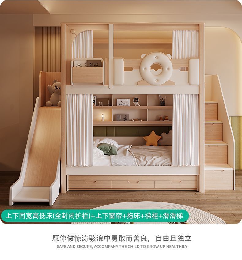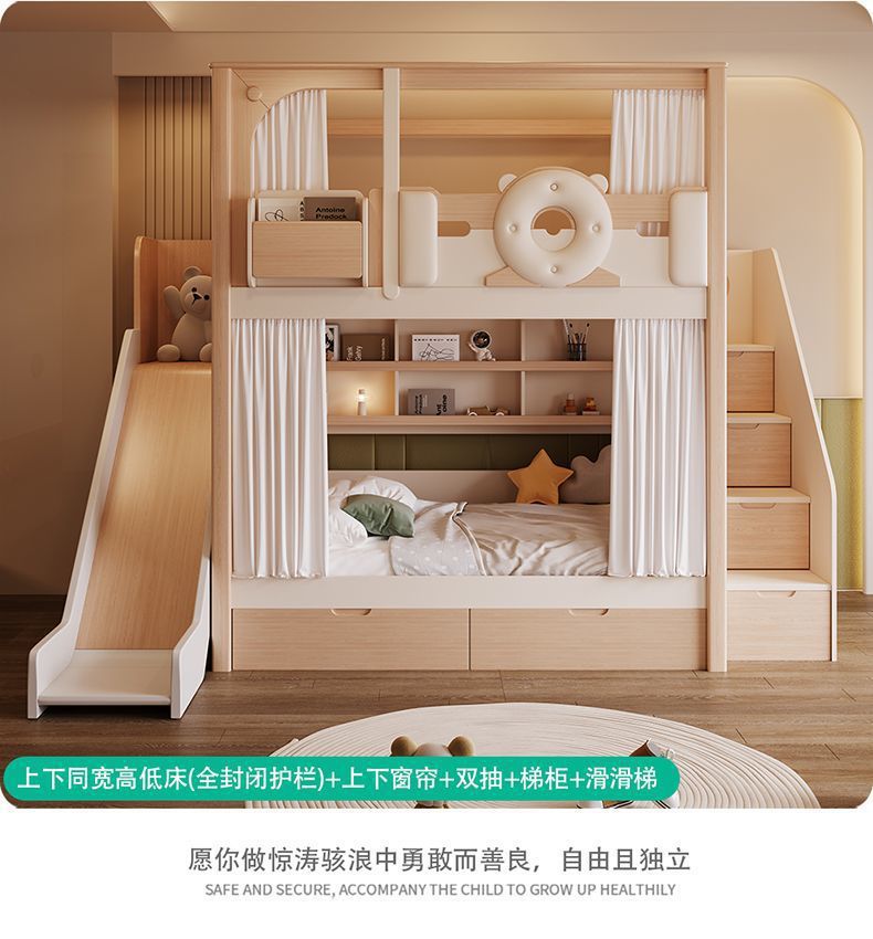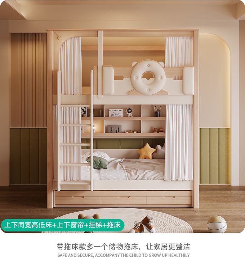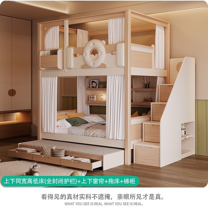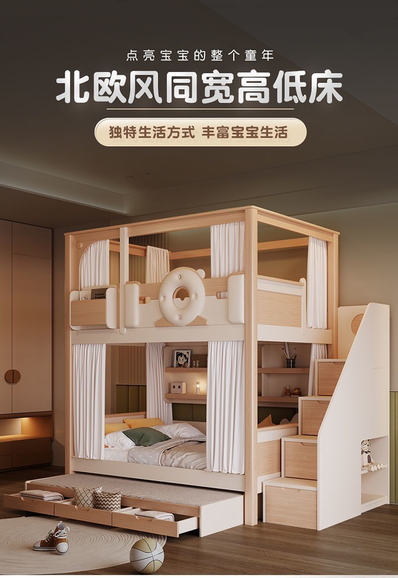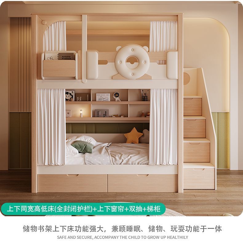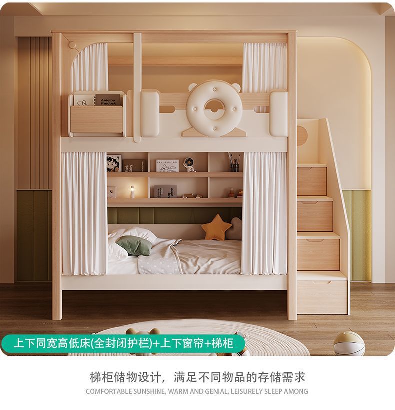 크림풍 이층침대, 고벽난간이 있는 어린이용 이층침대, 두층 높낮이 침대, 동일한 너비의 이층침대