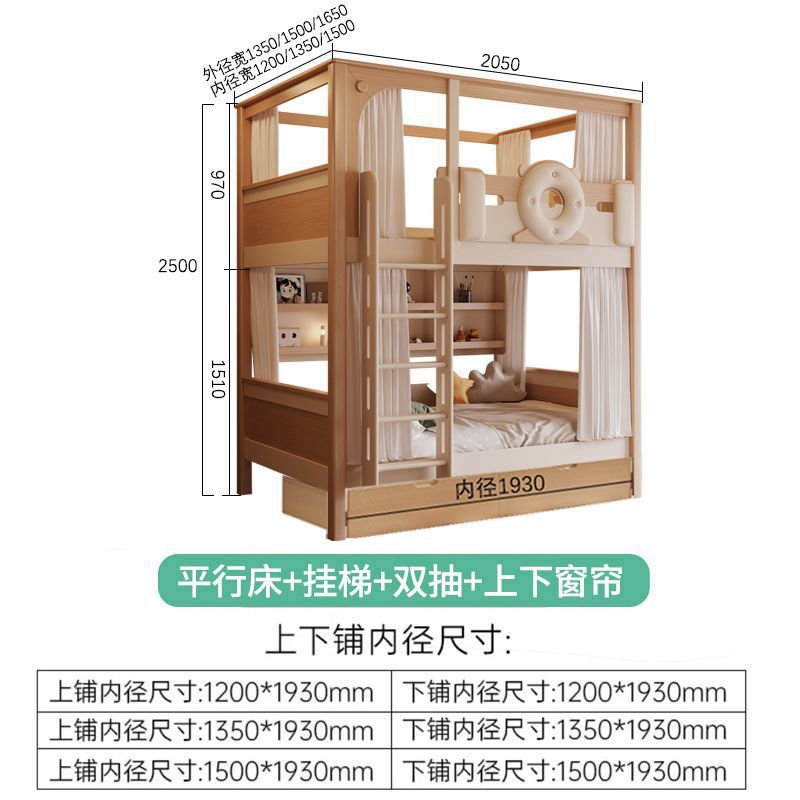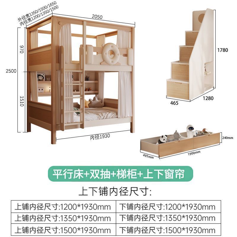 • 이층침대 + 사다리 + 이중서랍 + 매트리스 + 커튼*2