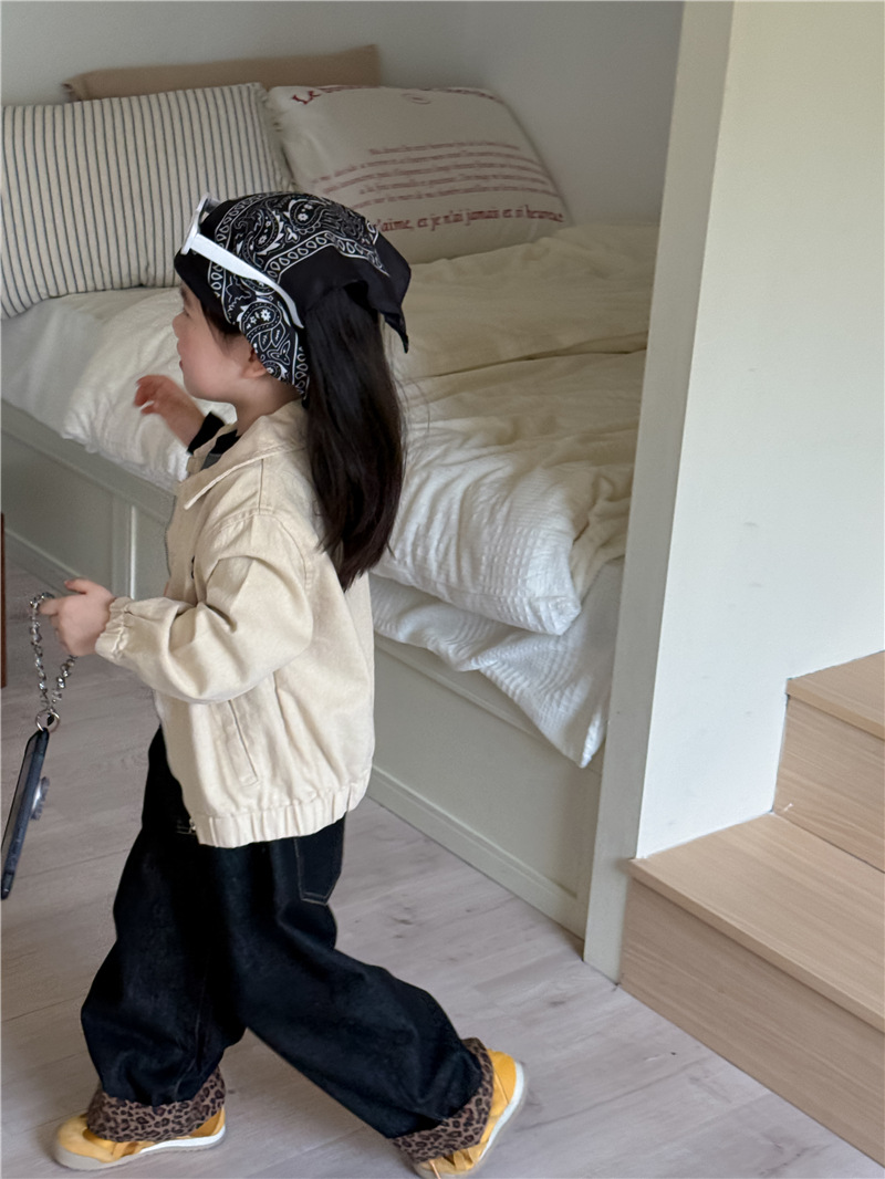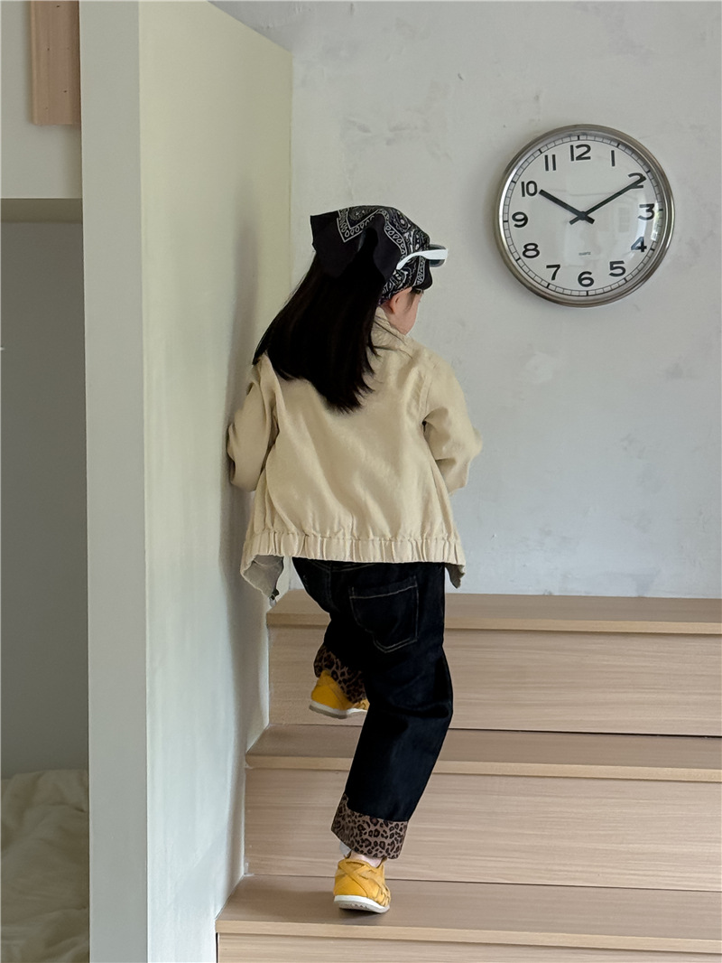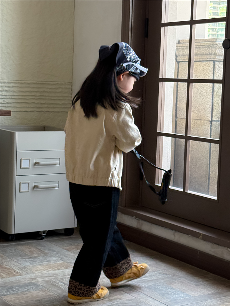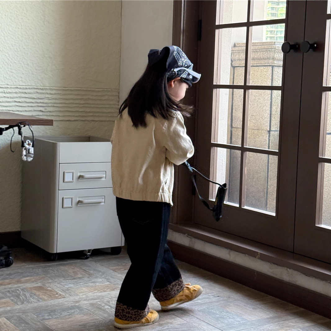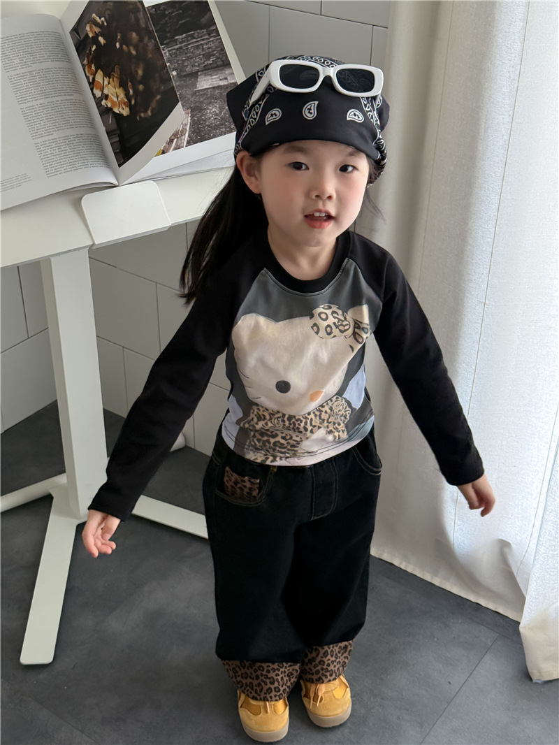 Sweet Tea Mom Girls 2025 가을 신작 데님 캐주얼 바지 아기 유치원 봄, 가을 다목적 레오파드 프린트 스플 라이스 바지스토어 가기
