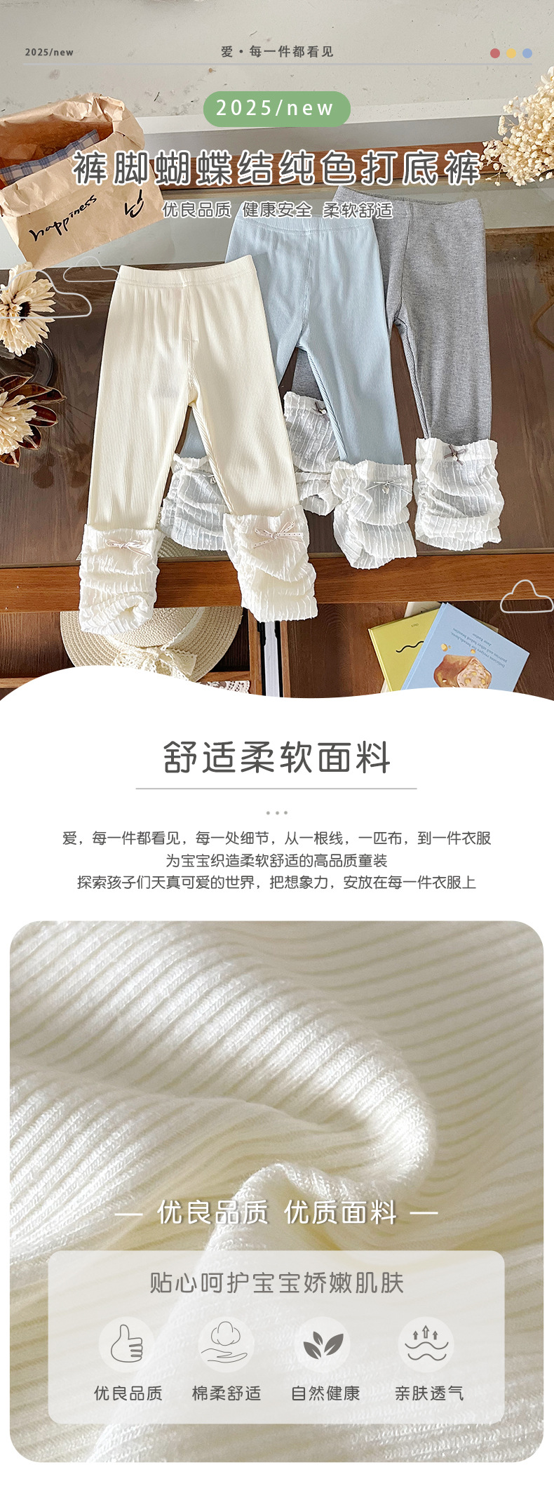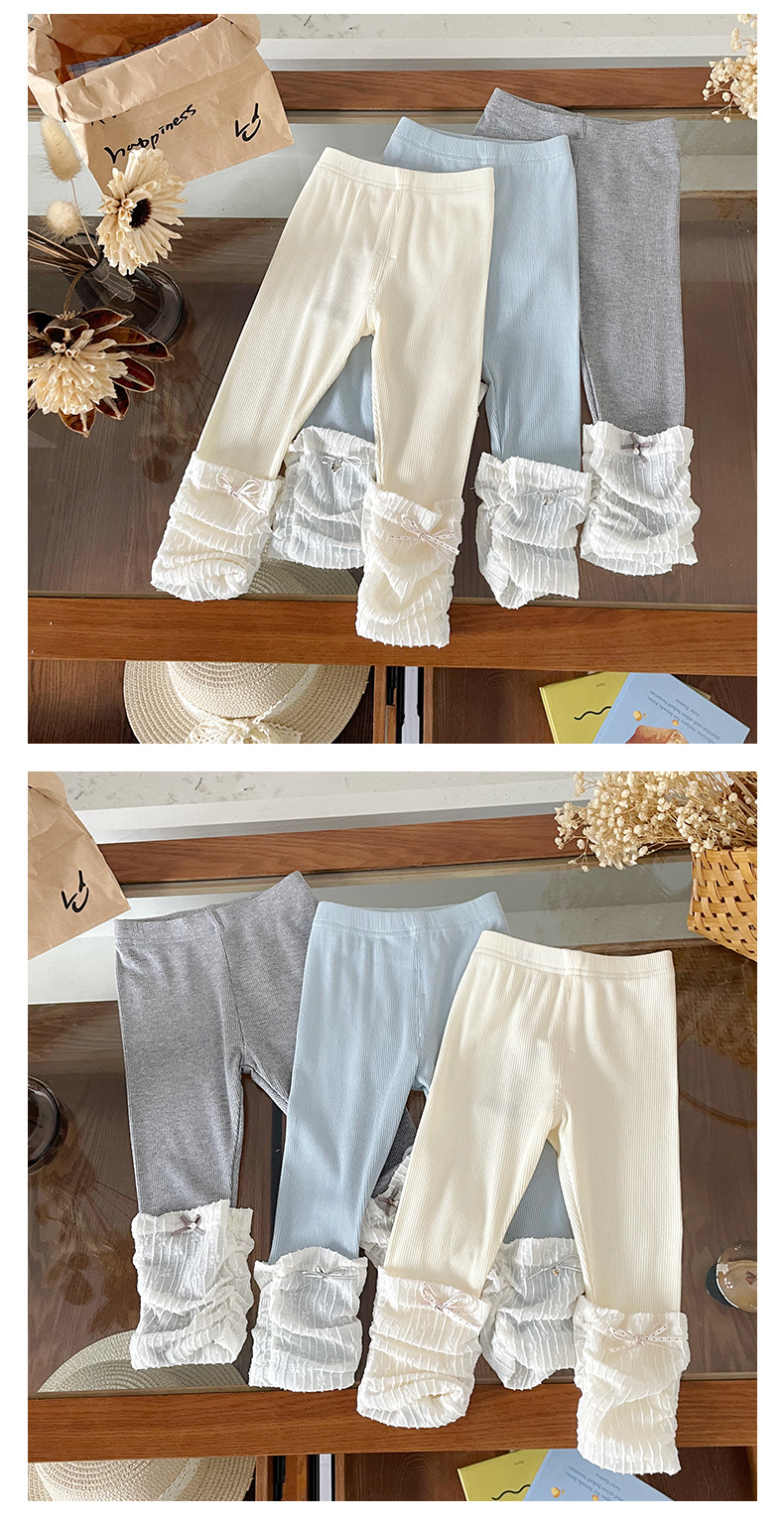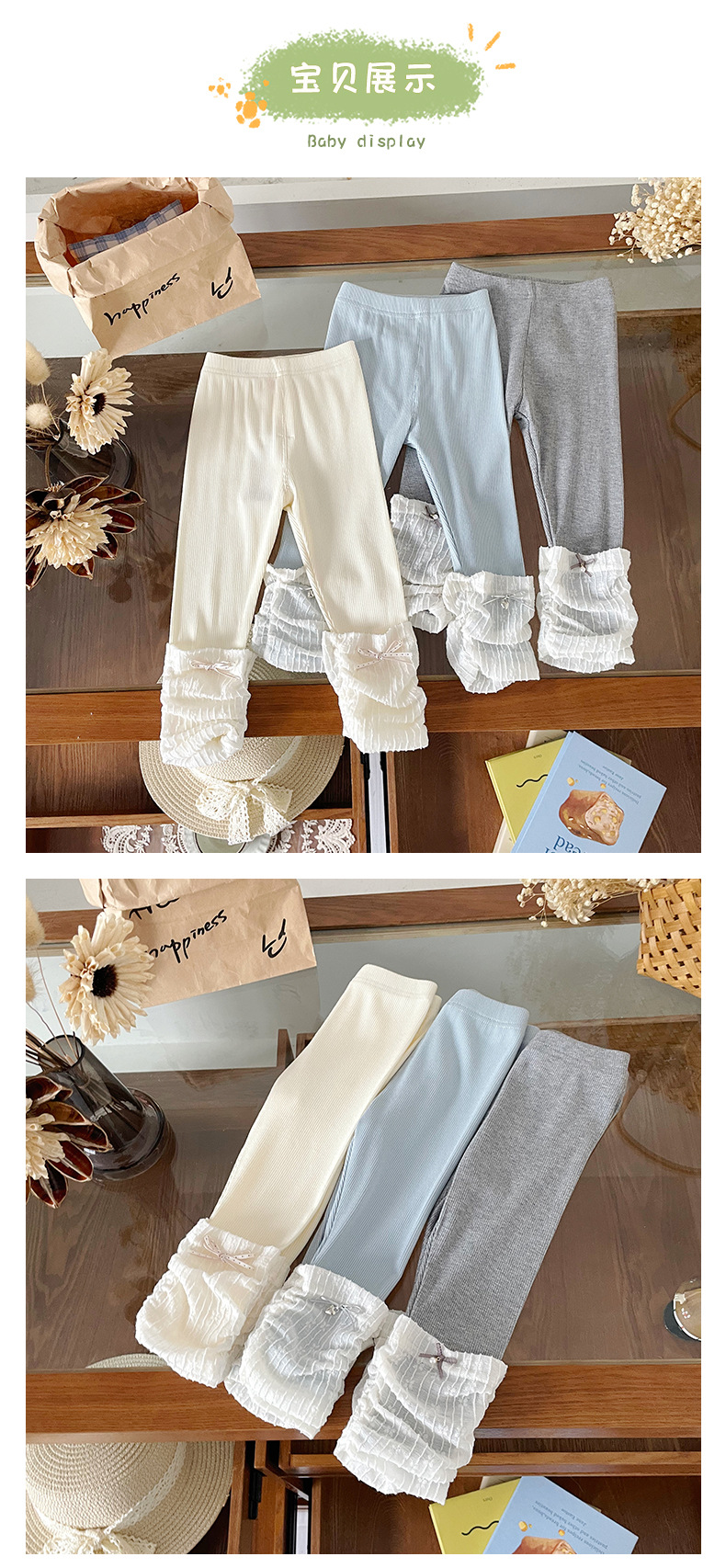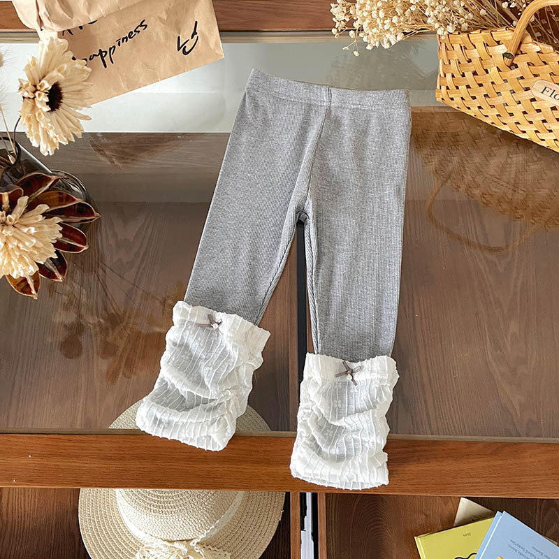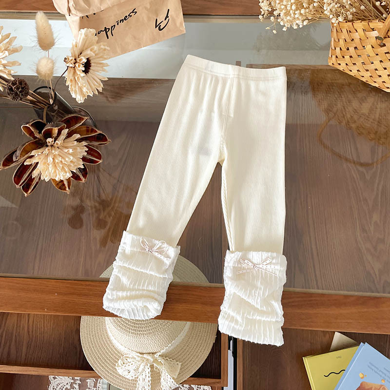 [재고 있음] QK252101 여아 레깅스 2025 가을 신작 레이스 보우 캐주얼 레깅스 트렌디