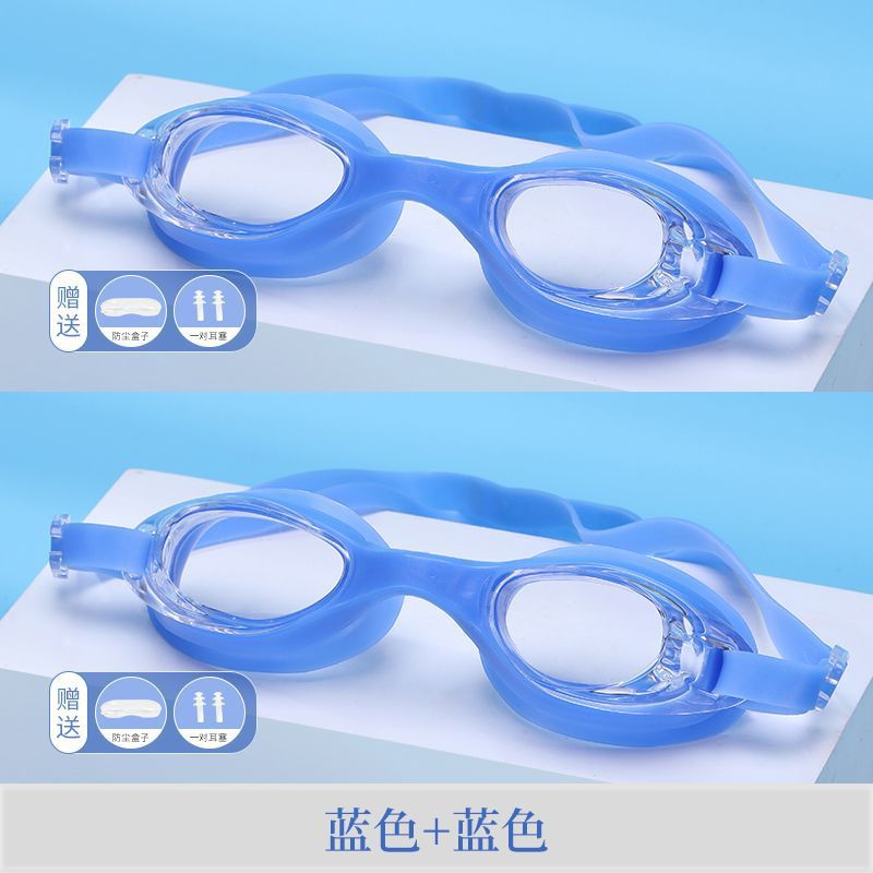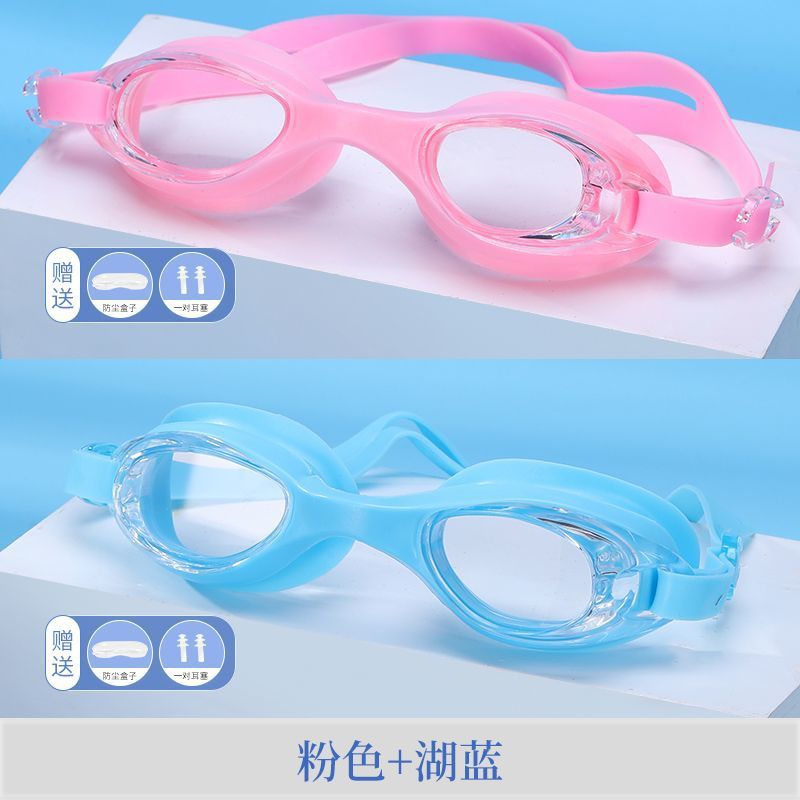 성인용 수영 고글용 무료 박스 귀마개, 4-612세 어린이, 남성 및 여성 방수 학생 수영 모자 세트