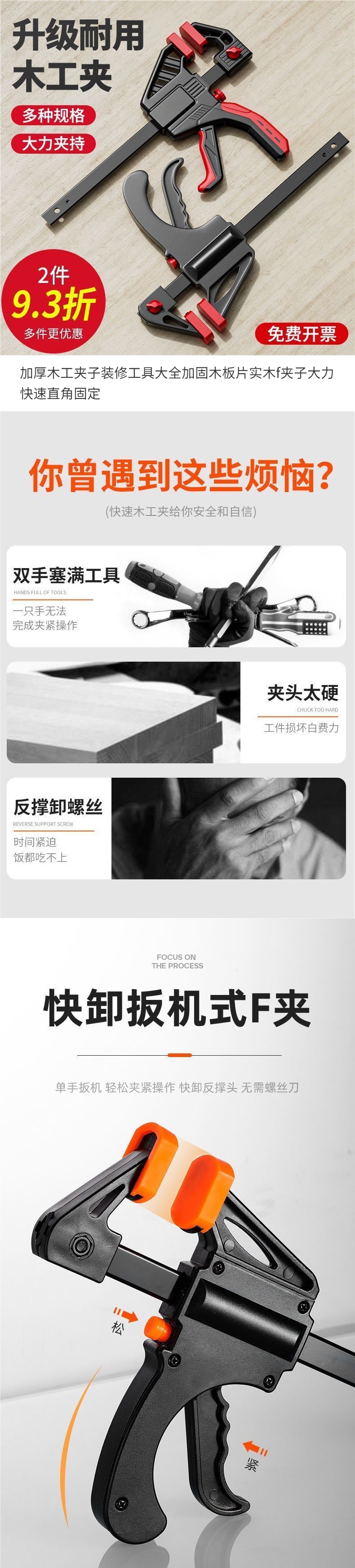 두꺼운 목공 클립 F형 고정 목재 시트 단단한 목재 강력하고 빠른 직각(2팩)