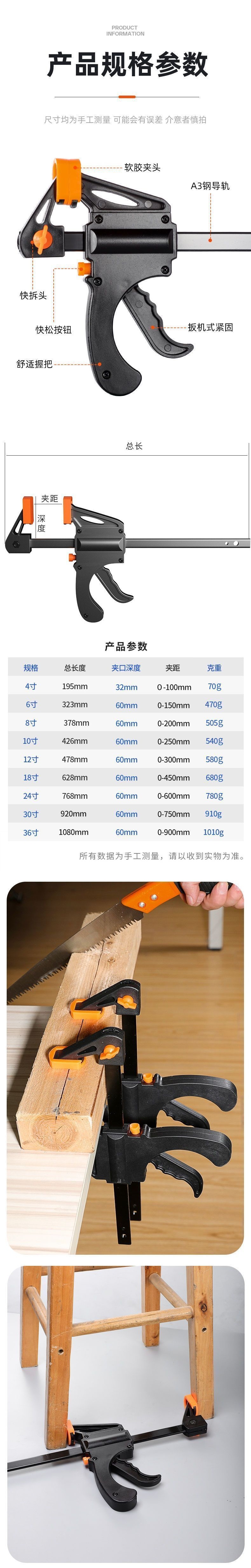 • 목공 클램프 1팩 - 목공 F 클램프 6inch [클램핑 범위 160mm]