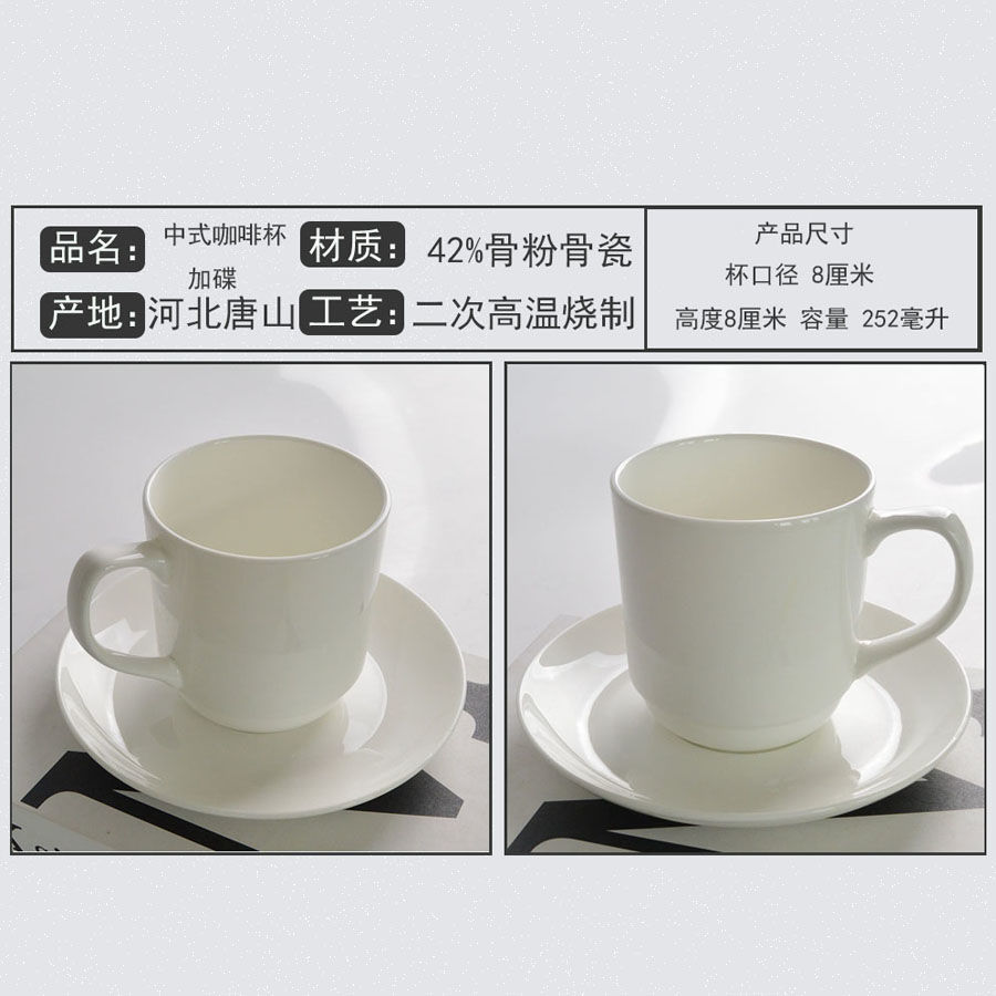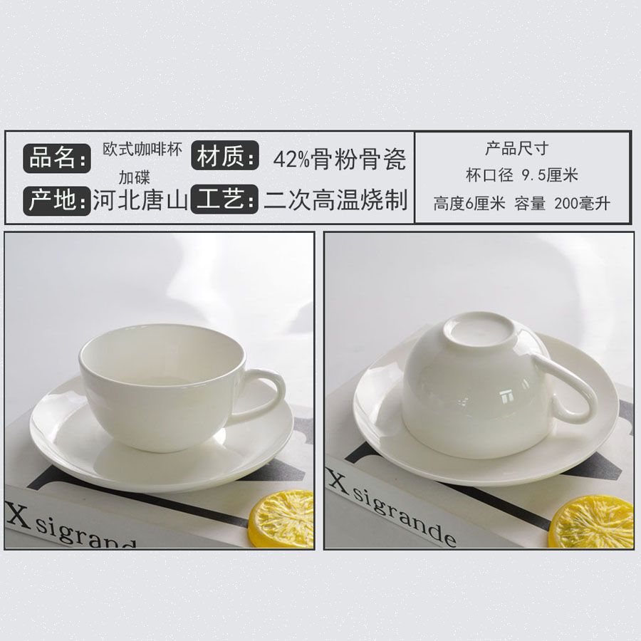 Tangshan 본차이나 순수한 흰색 유럽 스타일의 간단한 홈 오피스 커피 컵과 접시 세트 애프터눈 티 컵 커피 하우스스토어 가기