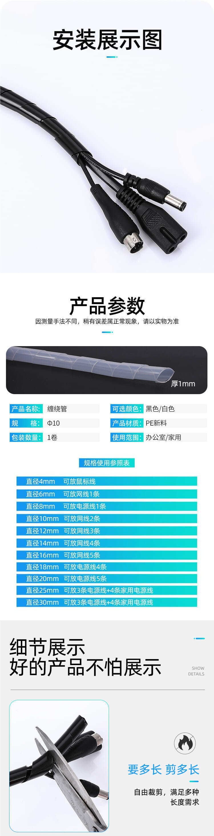 와인딩 튜브 4/6810-30mm 와이어 와인딩 튜브 와이어 관리 와이어 보호 슬리브 흑백스토어 가기