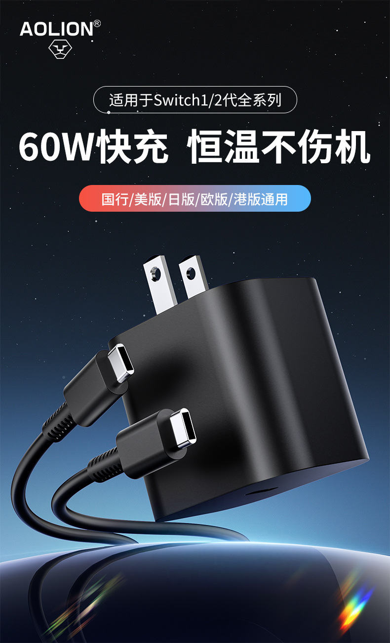 Nintendo Switch2 전원 어댑터 게임 콘솔 전원 공급 장치 60W 고속 충전 미국 표준 전원 공급 장치 NS2 충전기스토어 가기