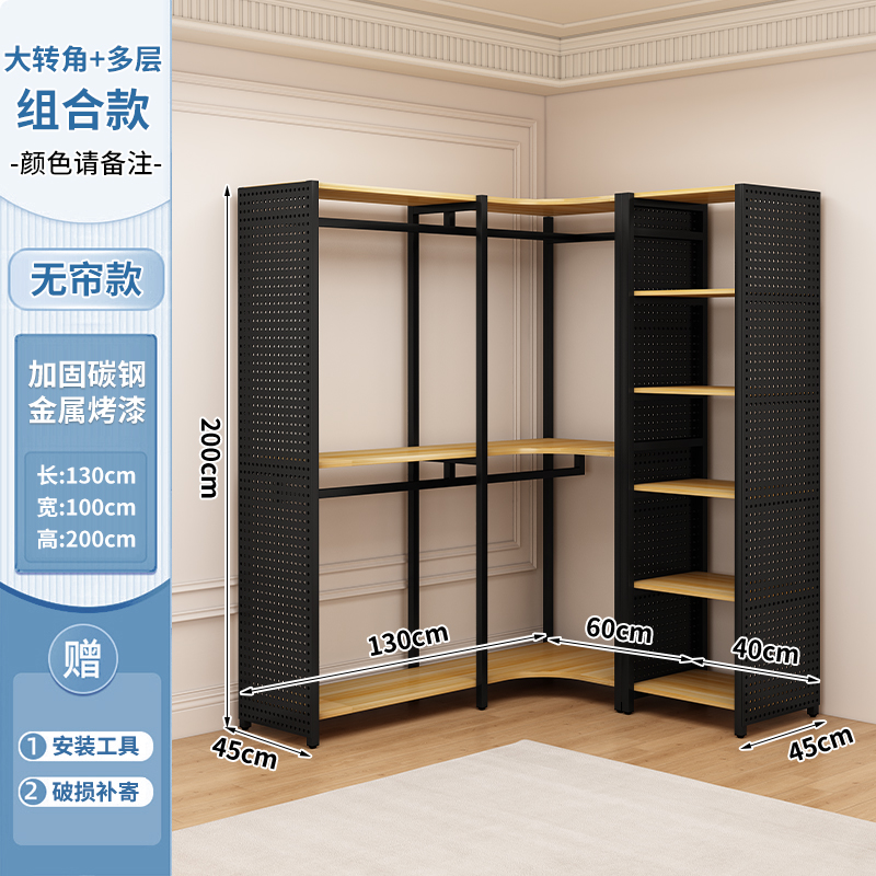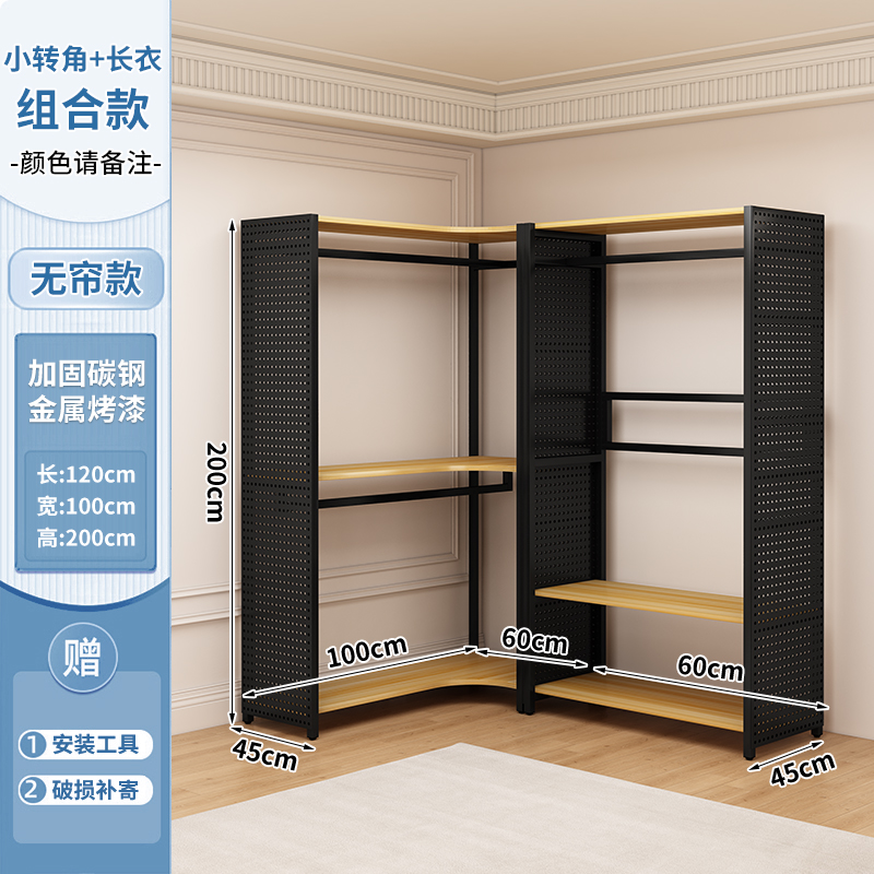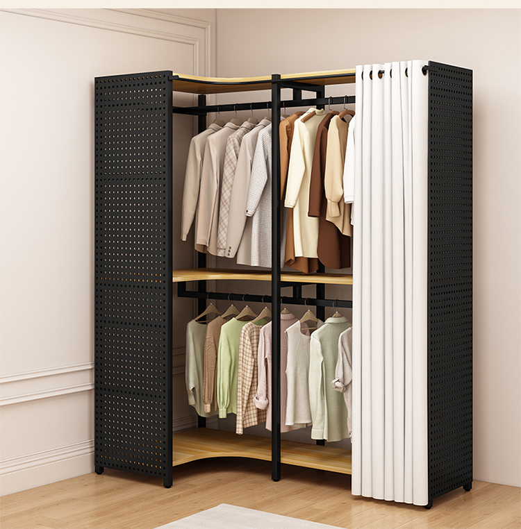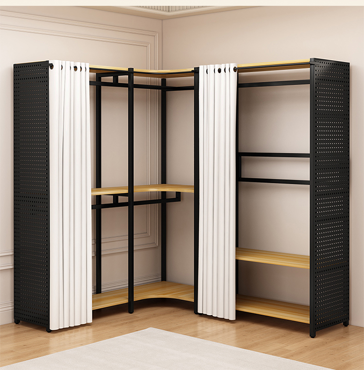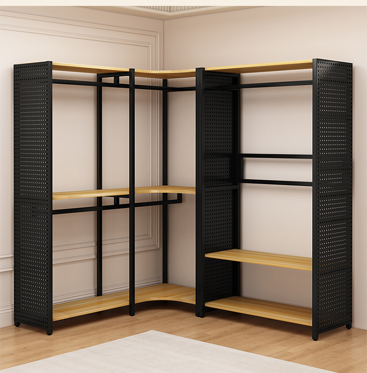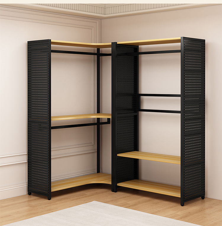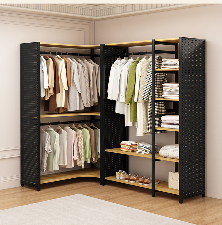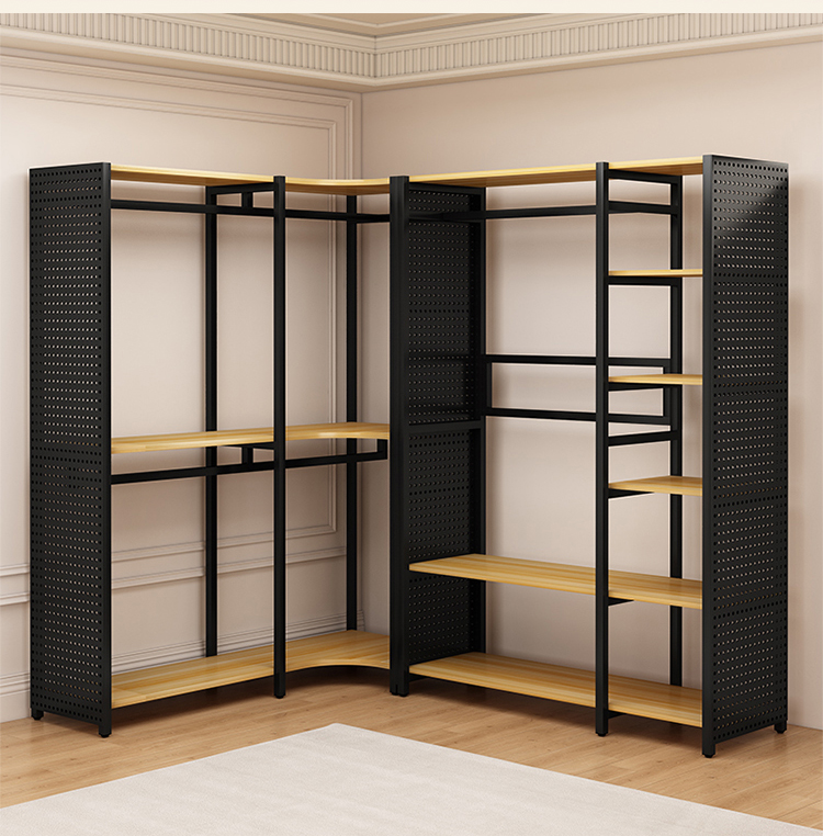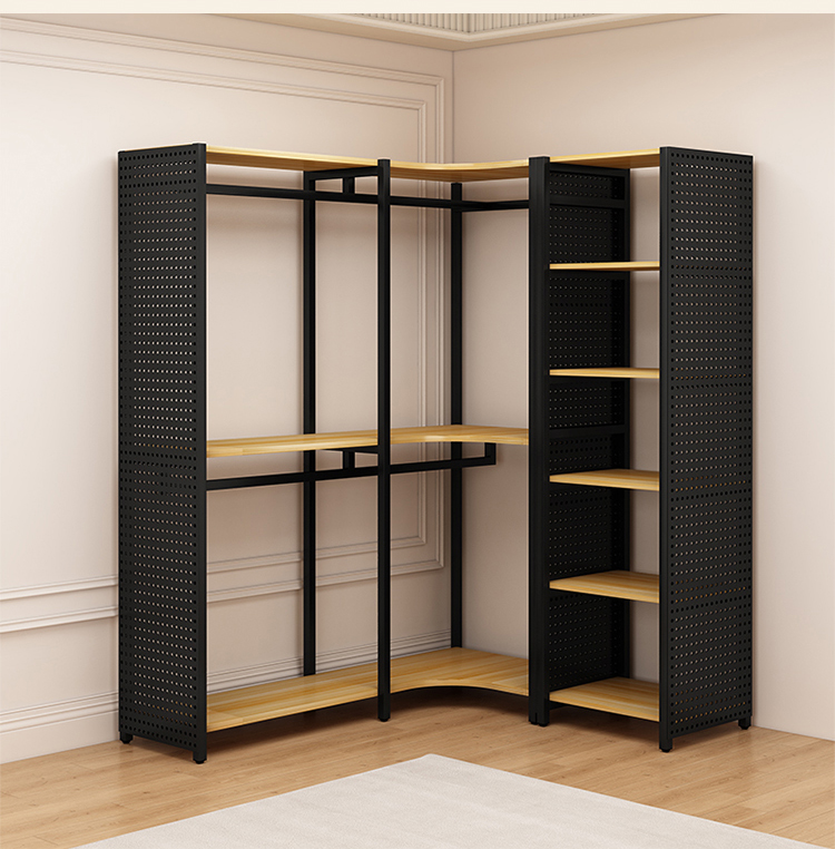 ♔ 코너 옷걸이 침실용 구멍판 금속 옷걸이 워크인 옷장 오픈형 바닥 선반