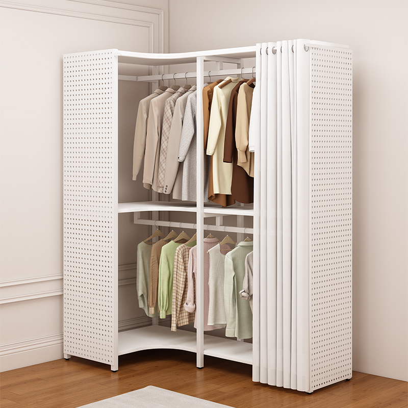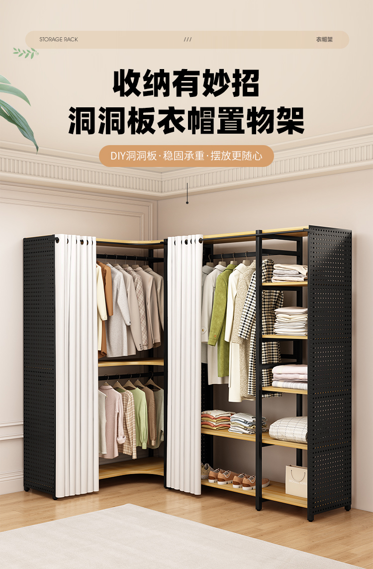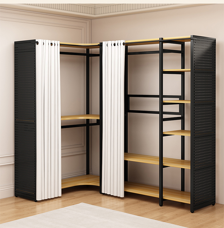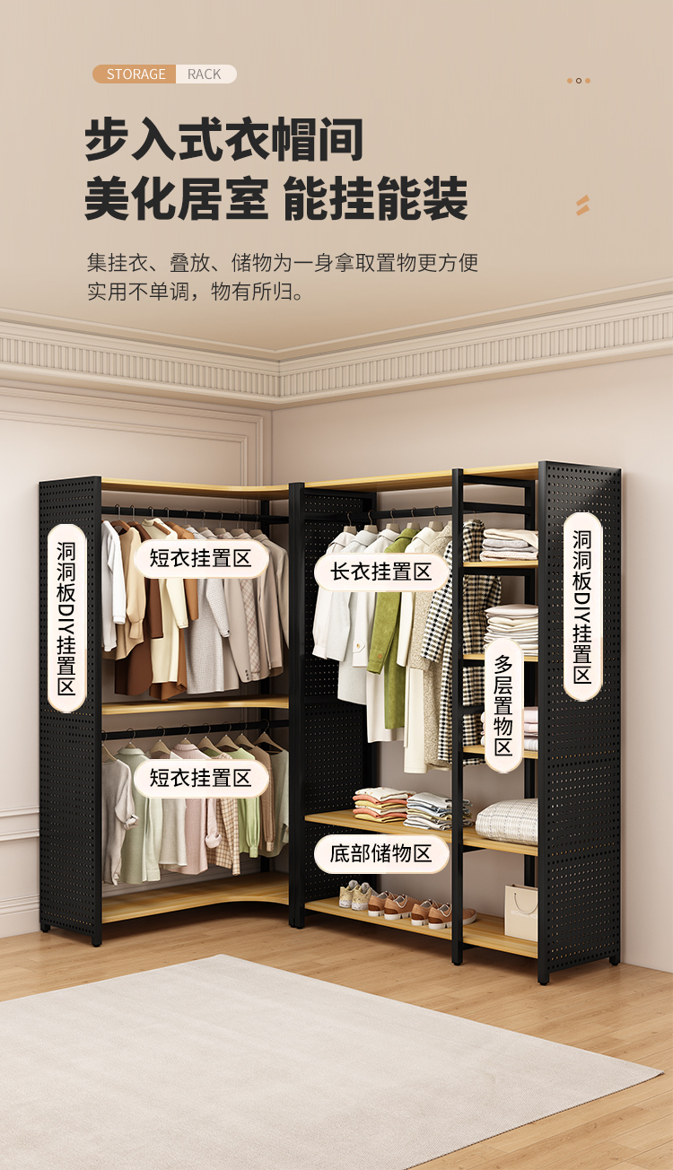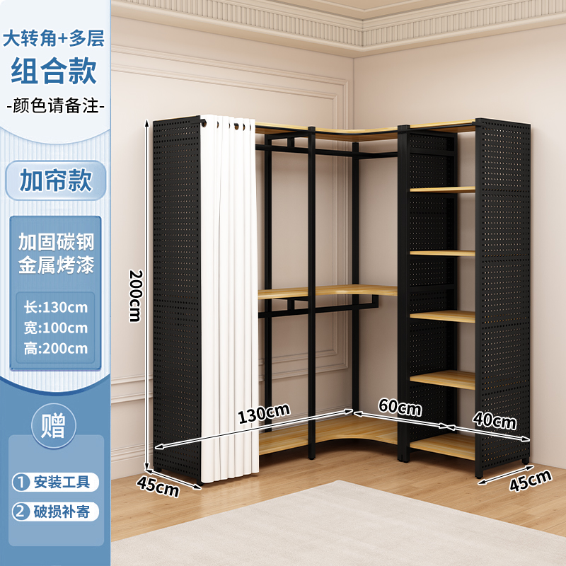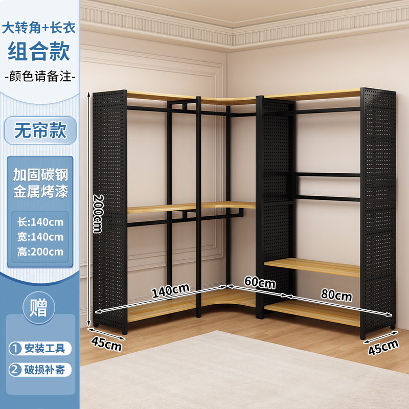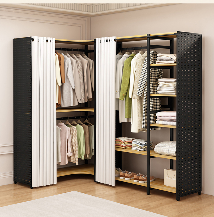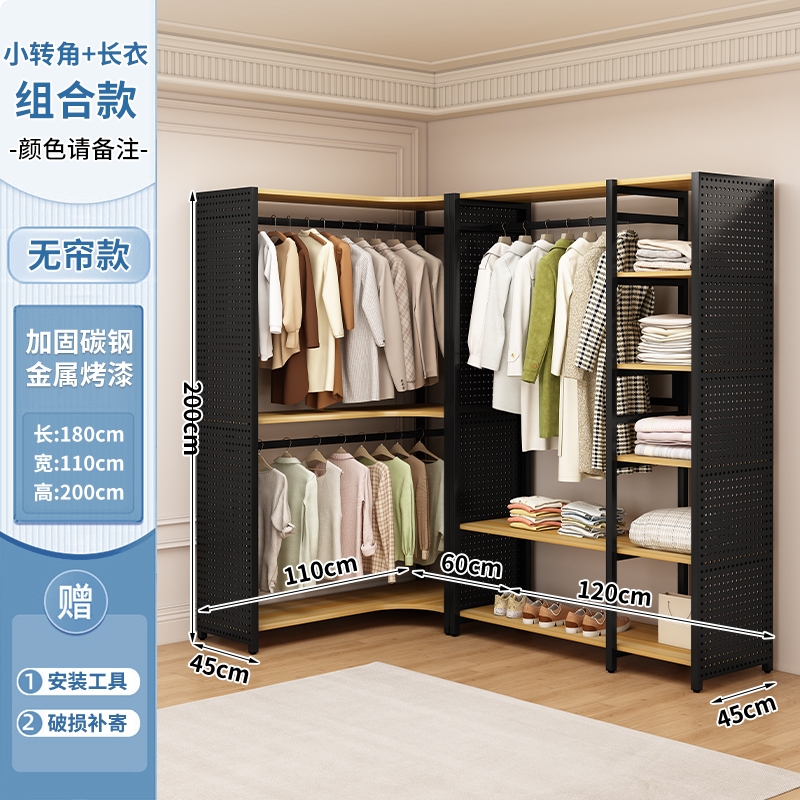 ♔ 코너 옷걸이 침실용 구멍판 금속 옷걸이 워크인 옷장 오픈형 바닥 선반