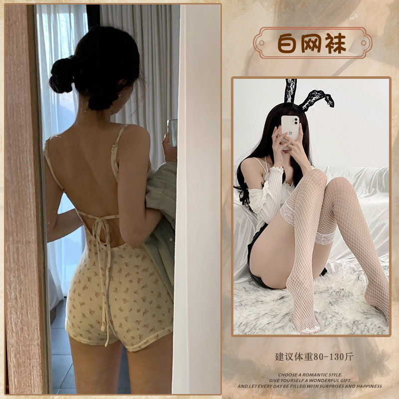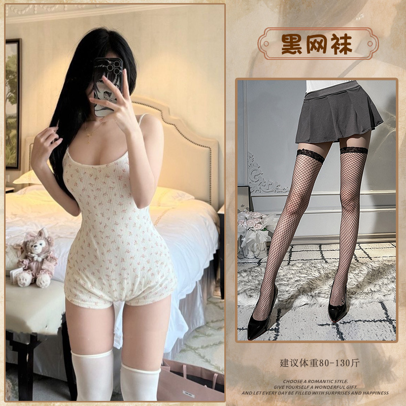 • 꽃무늬 점프수트(뒷면 레이스업) + 흰색 가랑이 없는 스타킹