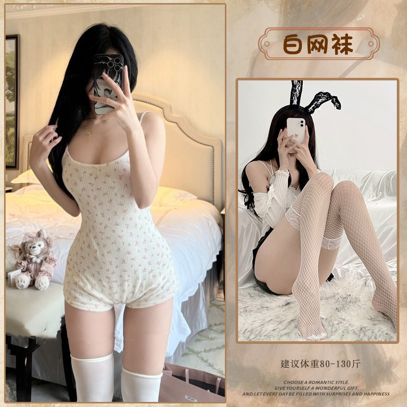 • 꽃무늬 점프수트(뒷면에 가슴 패드 포함) + 흰색 가랑이 없는 스타킹