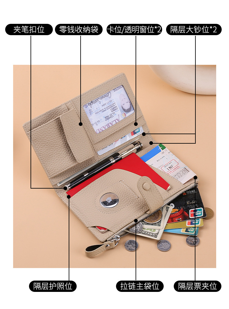 국경 간 도매 1등급 소가죽 여권 및 서류 가방 RFID 카드 지갑 지퍼 동전 지갑 여권 홀더 다기능 지갑스토어 가기