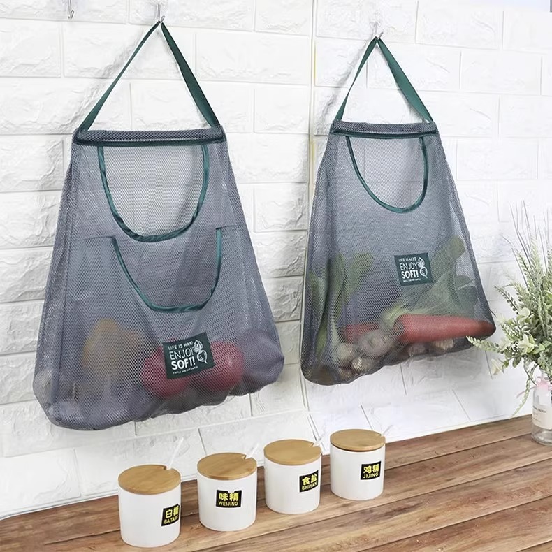 가정용 주방 다기능 과일 및 야채 교수형 가방 생강 및 마늘 보관 벽걸이 형 마늘 생강 및 마늘 보관 가방 통기성 메쉬 가방