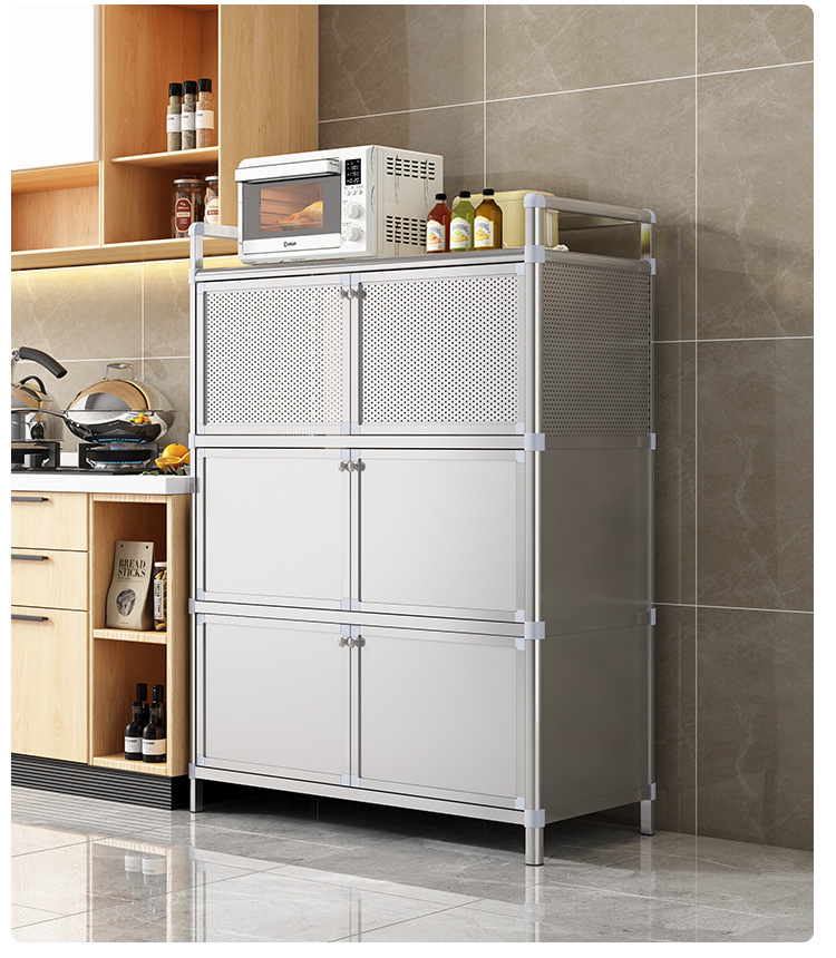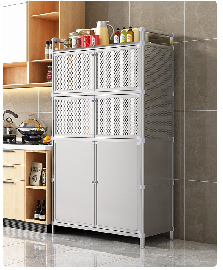주방 수납 선반 바닥에서 천장까지 도어가 있는 다층 다기능 스테인레스 스틸 수납 캐비닛 캐비닛 가정용 찬장 수납 캐비닛