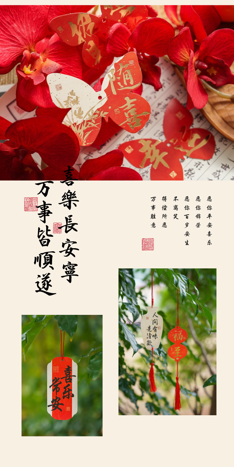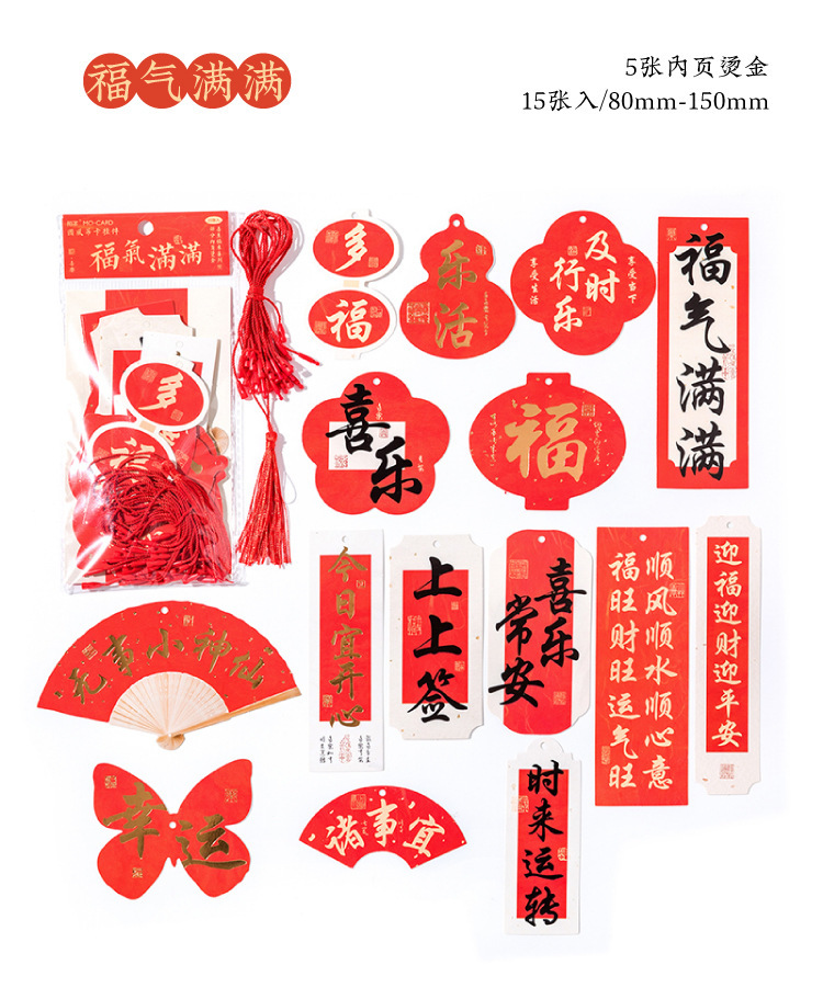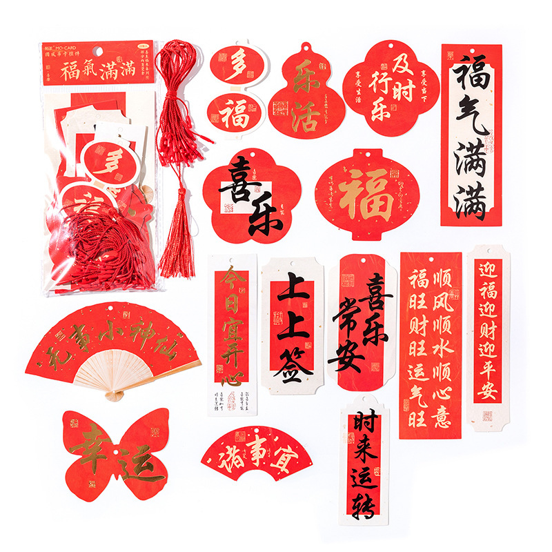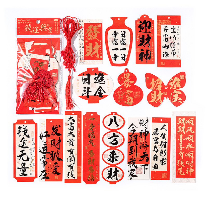 Momo Guochao Feng Xizhifulai 시리즈 교수형 카드 펜던트 북마크 술 새해 축복 홈 장식 카드스토어 가기