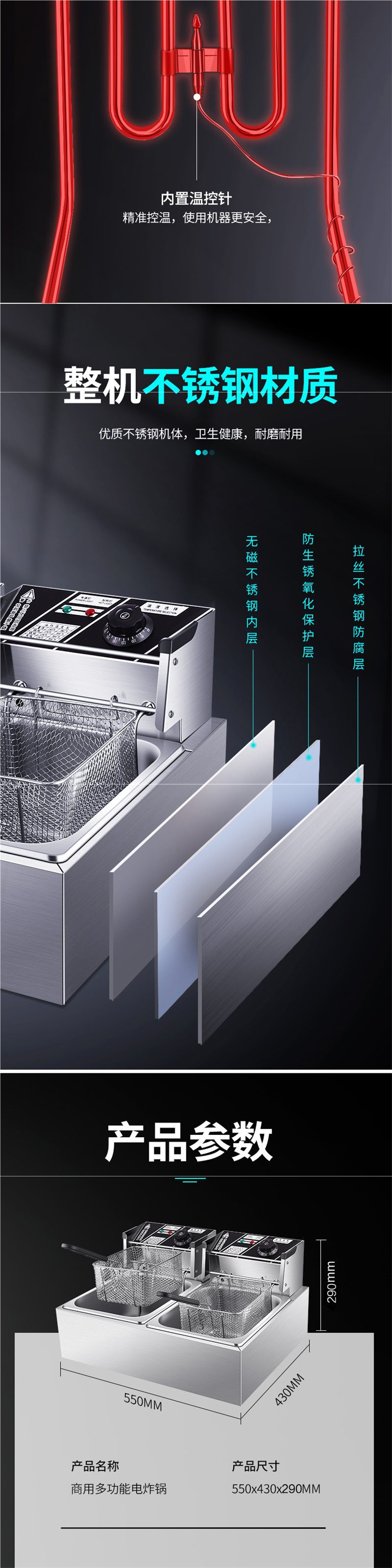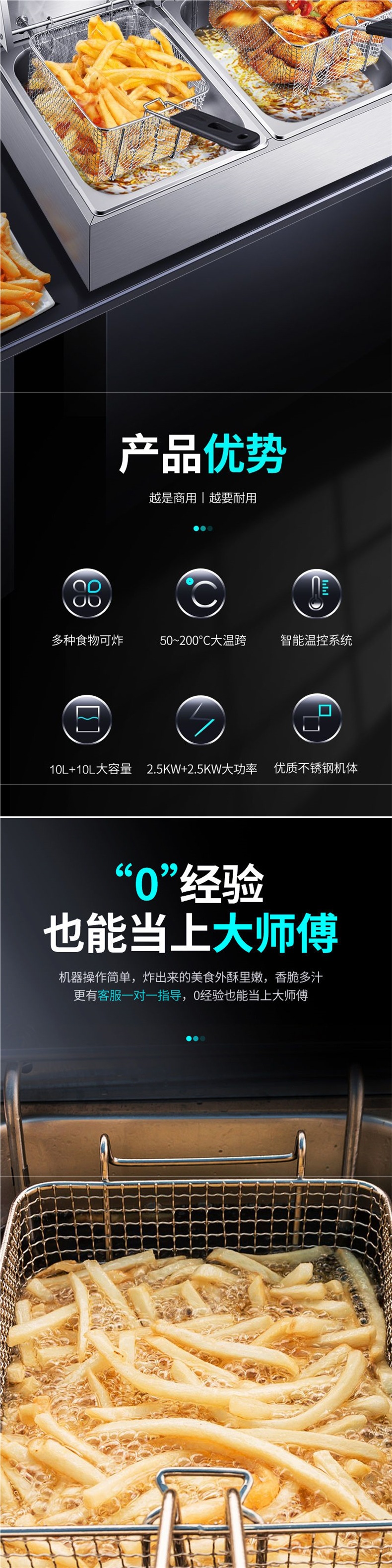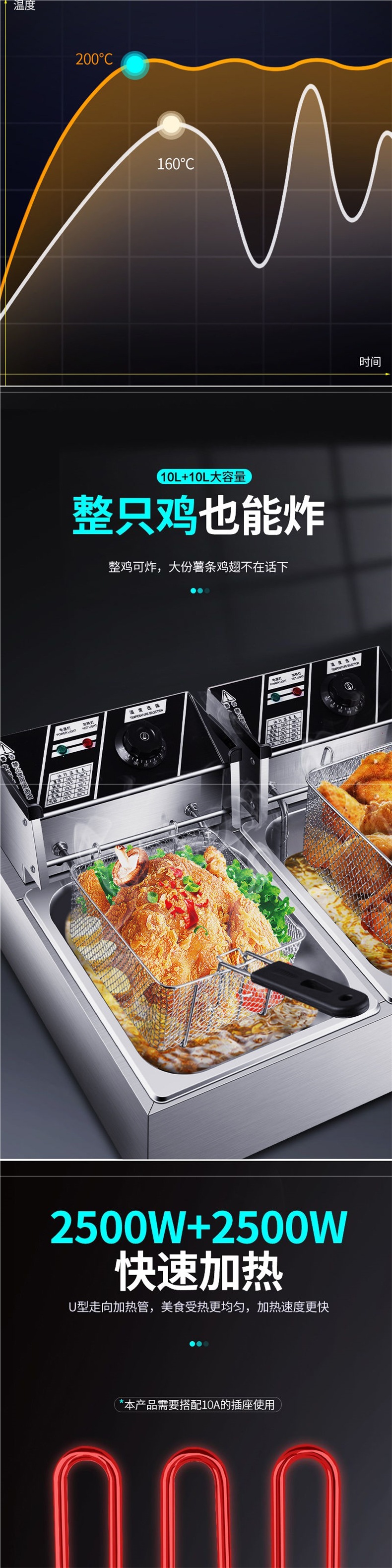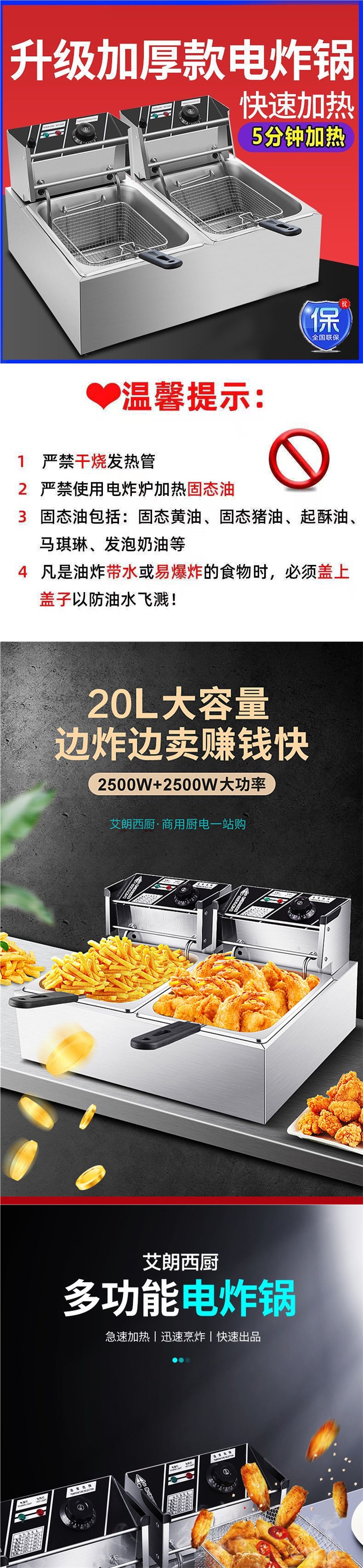 전기 프라이팬, 상업용 프라이팬, 자동 온도 조절, 이중 실린더, 대용량 프라이팬, 스니커즈, 감자 튀김, 치킨 슈레드, 공장 직접 판매스토어 가기