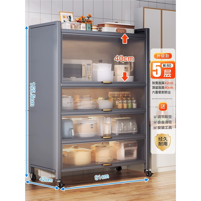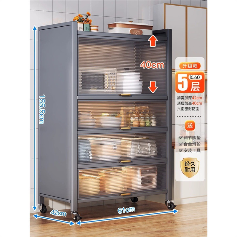 도어가 있는 도매 주방 수납 선반, 다층 바닥부터 천장까지 방진 식기, 식기류, 전기 제품, 냄비, 틈새가 있는 작은 캐비닛 수납스토어 가기