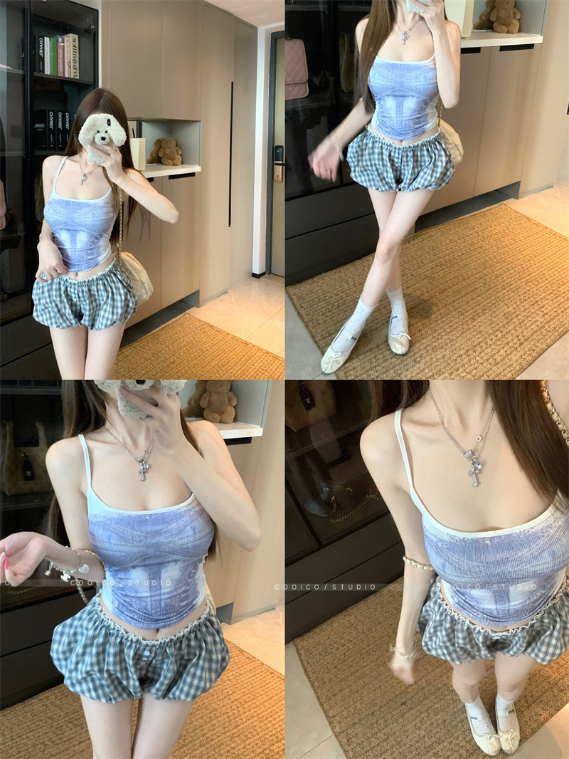 여름 핫걸들을 위한 디자인 화이트 프린트 섹시 캐미솔, 슬림핏 이너웨어, 슬리밍 숏탑, 아우터웨어스토어 가기