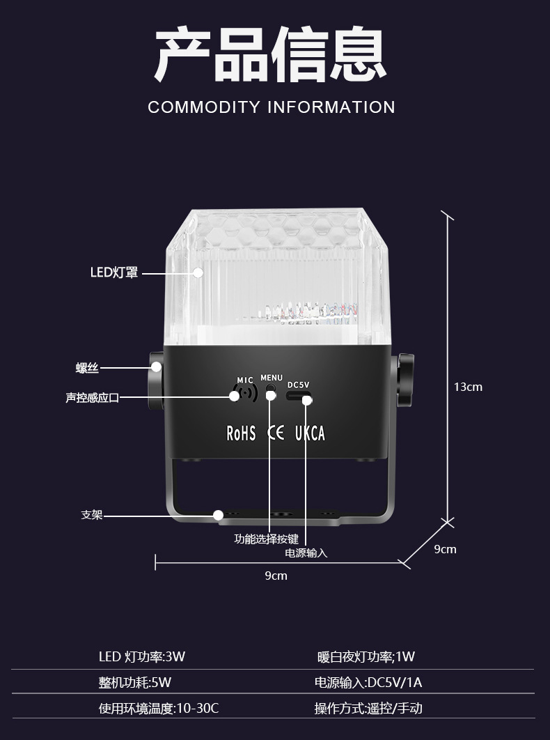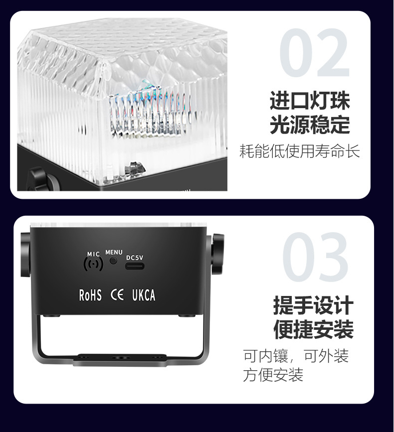 국경 간 새로운 다채로운 LED 무대 조명 야간 조명 KTV 홈 분위기 조명 스트로브 사운드 제어 조명