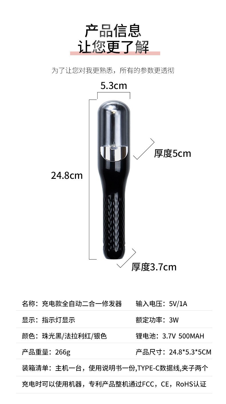 국경 간 새로운 충전식 2-in-1 헤어 클리퍼 가정용 이발기 머리 갈라진 수리 USB 충전식 모델