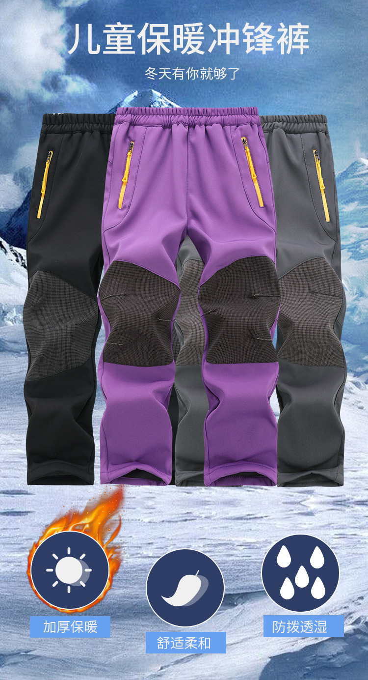 남아 및 여아용 아동용 바지, 야외용 소프트 쉘 바지, 방수, 통기성, 벨벳, 따뜻한 등산 바지, 가을 겨울 대외 무역스토어 가기