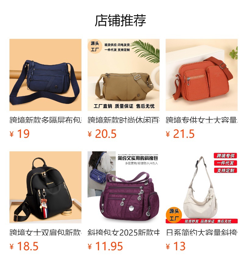 여성용 크로스백, 수출용 인기 상품, 나일론 원단 숄더백, 다용도 포켓, 대용량, 캐주얼 방수 미니백스토어 가기
