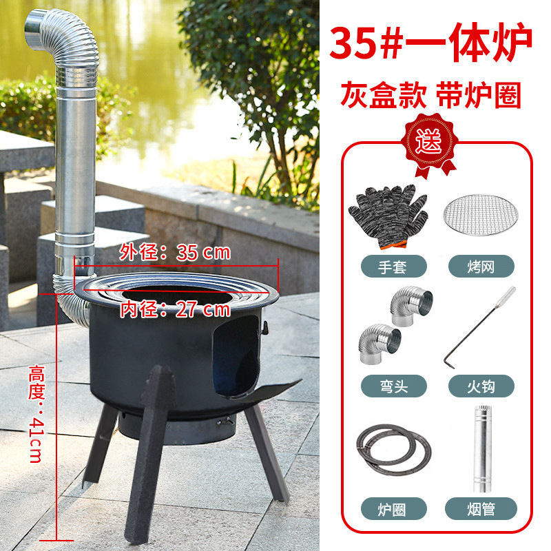 • [가정용 추천] 특대 일체형 난로 48cm + 이중귀 냄비 + 난로링 + 선물패키지.