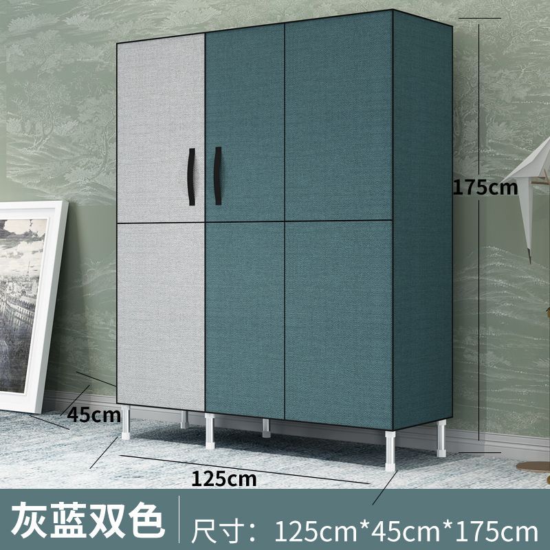 간단한 조립 실용적인 천 옷장 강철 파이프 두꺼운 강화 전체 강철 프레임 옷장 침실 더블 패브릭 보관 캐비닛