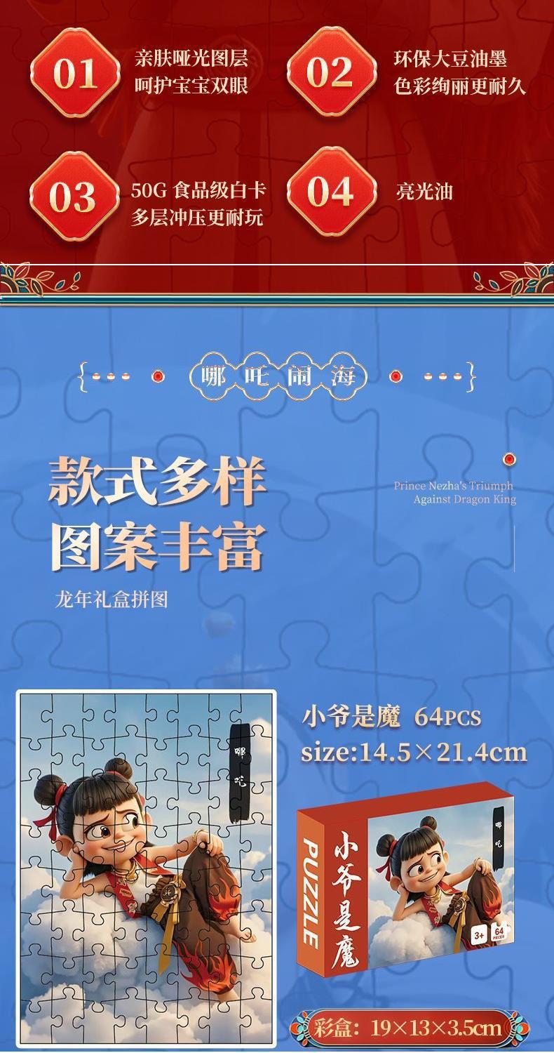 • 휴대용 선물 상자 [애완 동물 제자] Nezha 한정판 퍼즐 - Nezha 2 Magic Boy Haohai 퍼즐 휴대용 선물 상자
