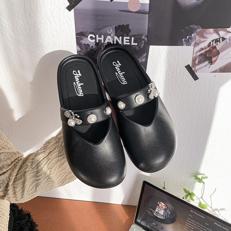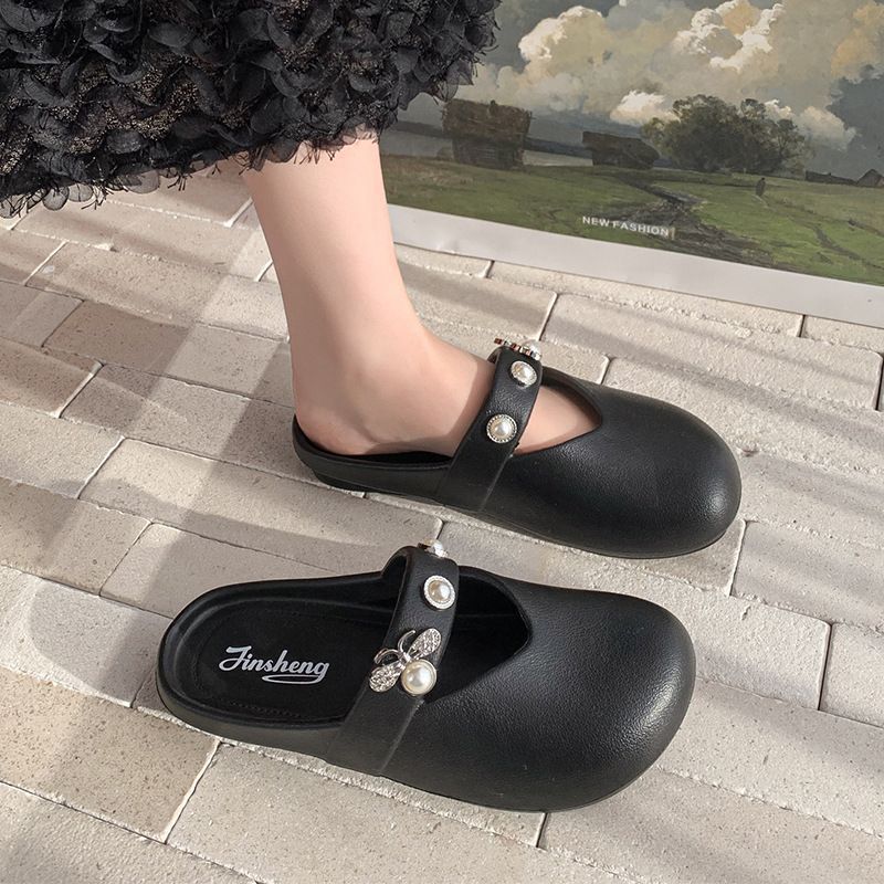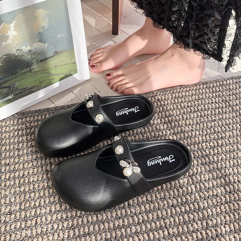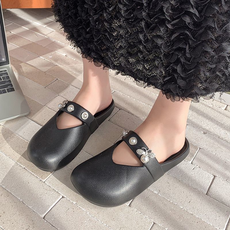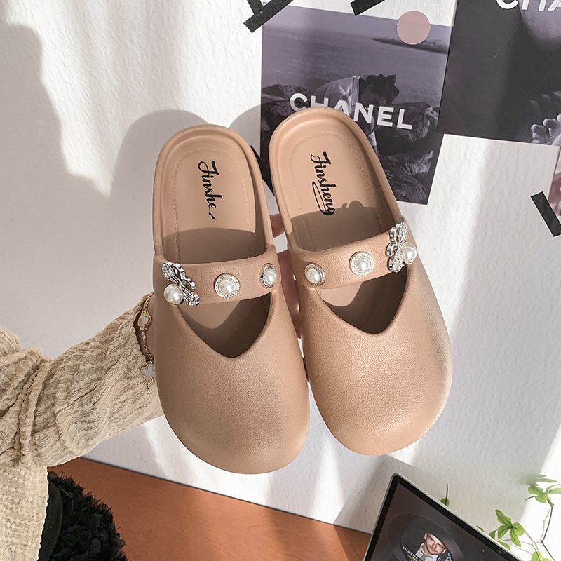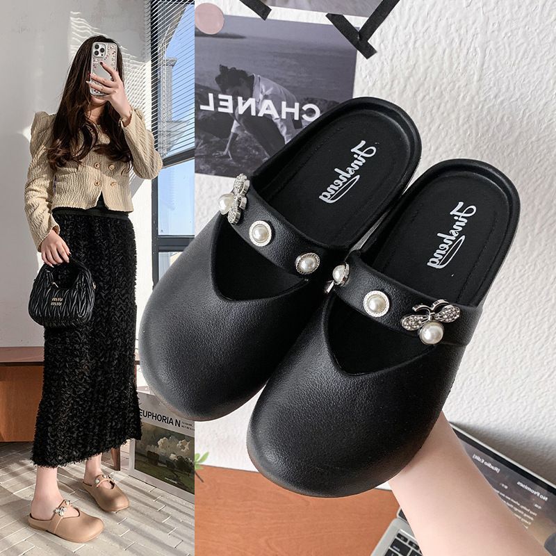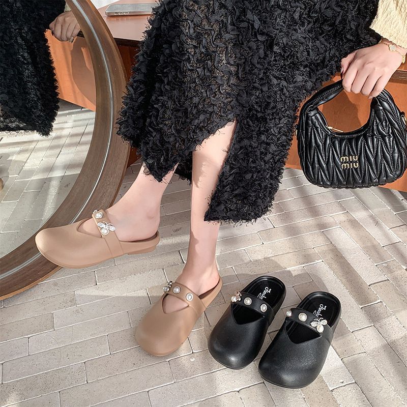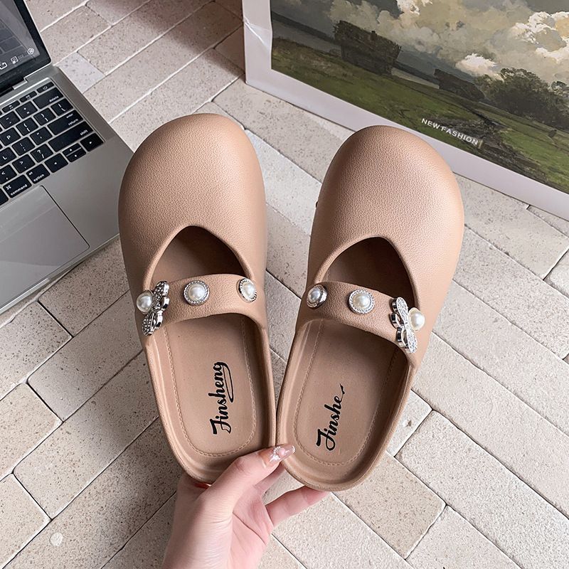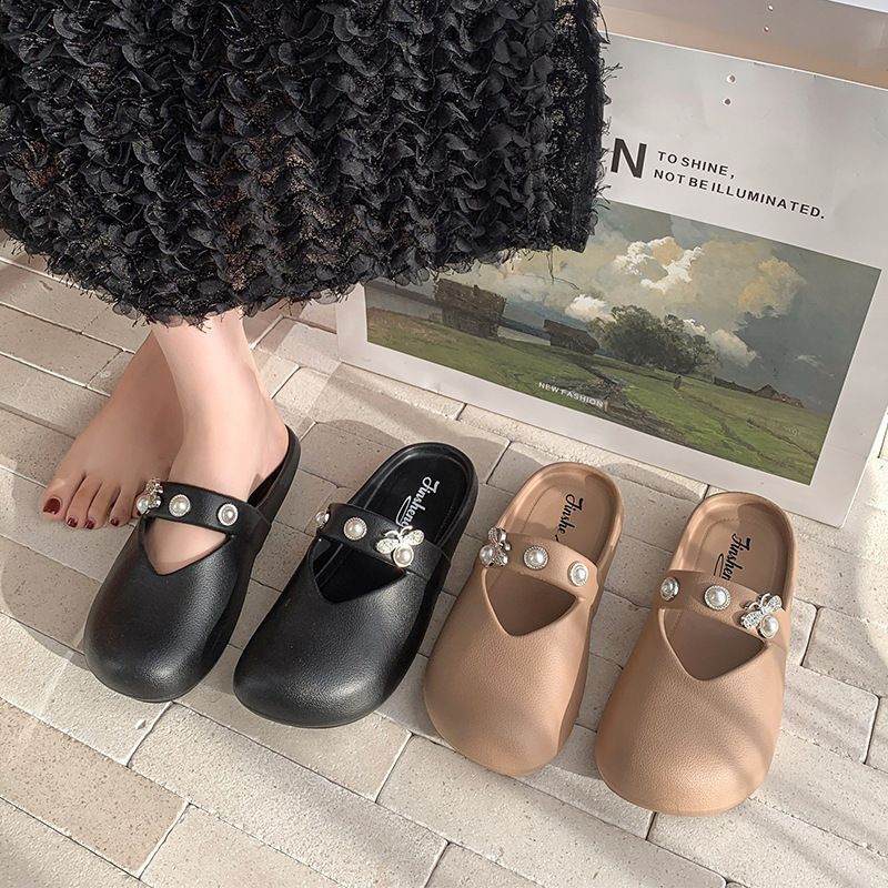 집에서 미끄럼 방지 슬리퍼, 부드러운 밑창, 패셔너블하고 다재다능한 여성용 슬리퍼, 2025년 여름 새로운 스타일의 여성용 슬립온 라인스톤 슬리퍼스토어 가기