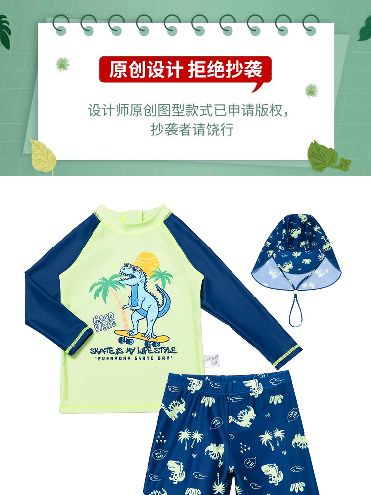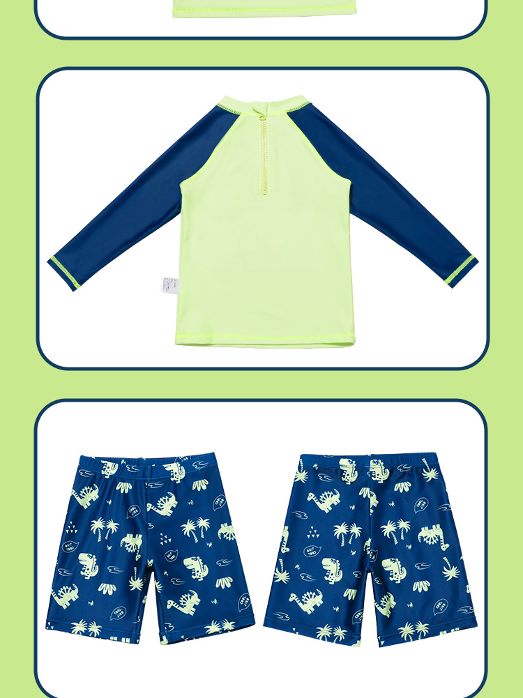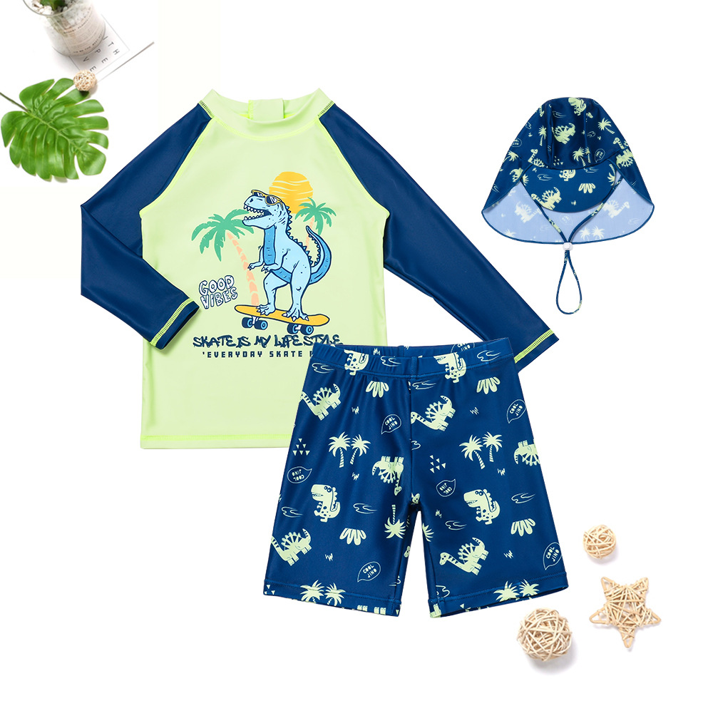 소년 스플릿 수영복 세트 공룡 프린트 긴 소매 중형 및 대형 어린이 속건성 서핑 온천 해변 수영 장비