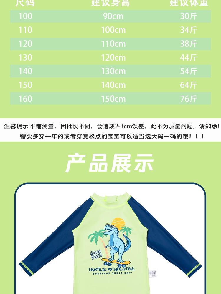 소년 스플릿 수영복 세트 공룡 프린트 긴 소매 중형 및 대형 어린이 속건성 서핑 온천 해변 수영 장비스토어 가기