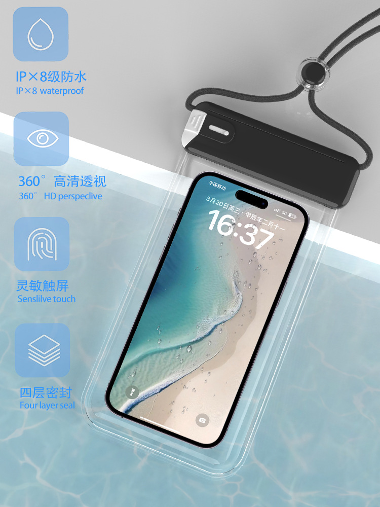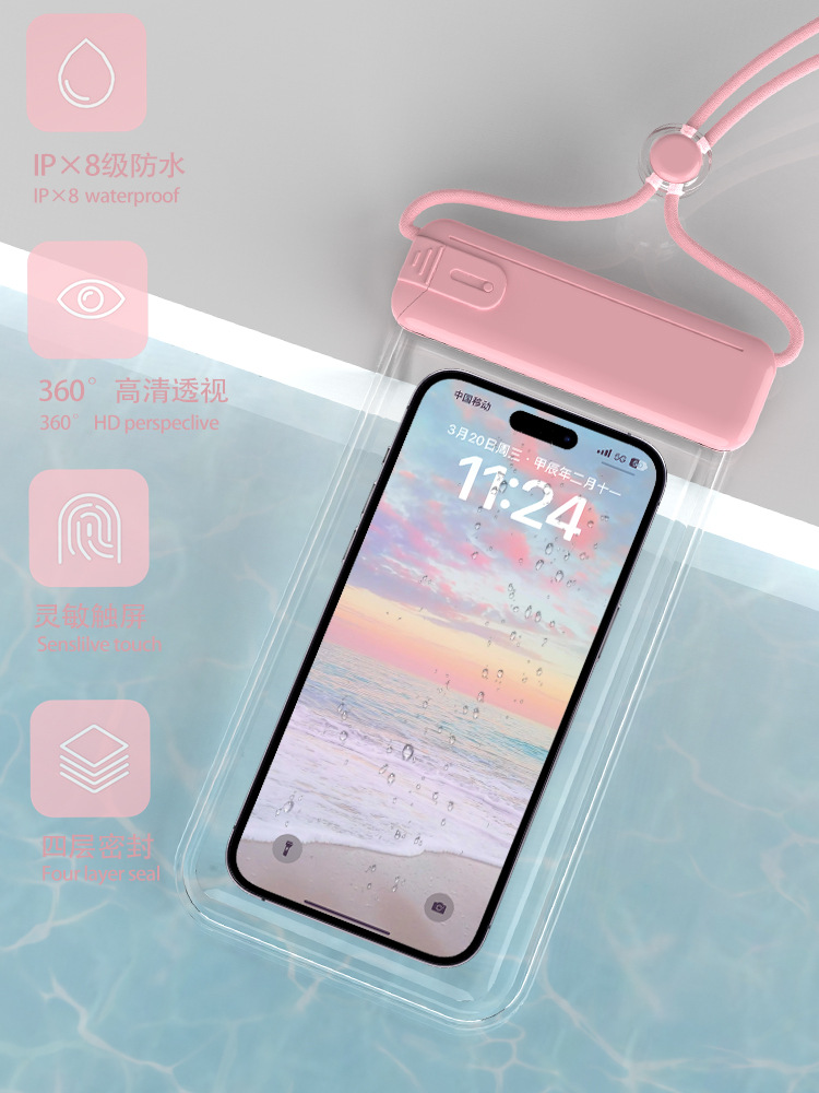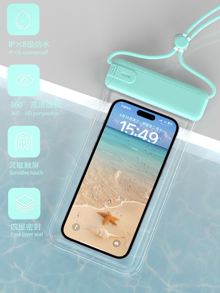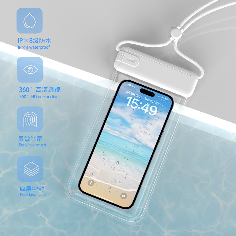터치 스크린이 있는 방수 휴대폰 가방, 수영용 자체 밀봉 밀봉 가방, 해변 다이빙 사진 촬영, 표류용 투명 방수 휴대폰 케이스