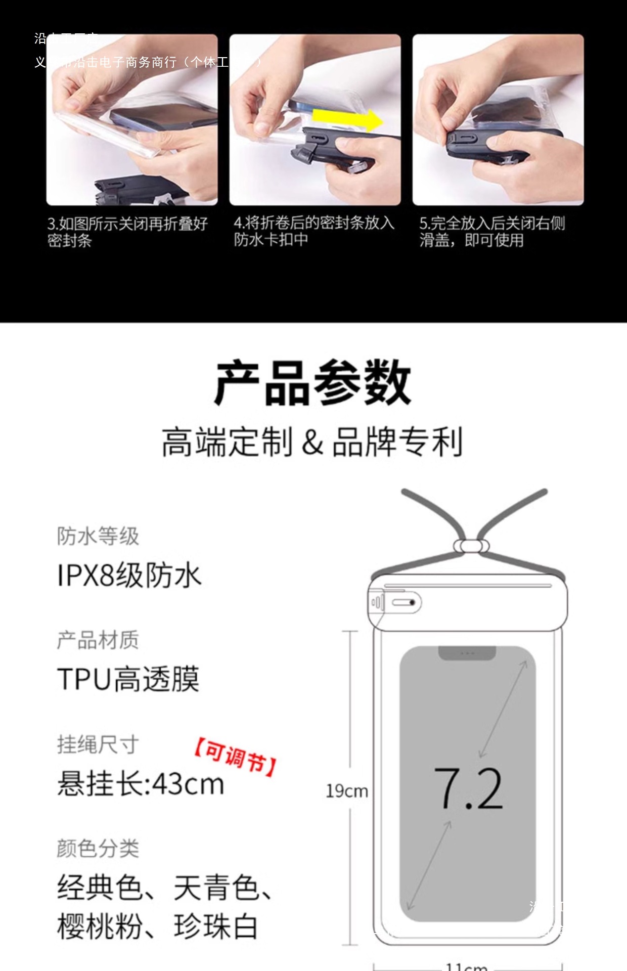 터치 스크린이 있는 방수 휴대폰 가방, 수영용 자체 밀봉 밀봉 가방, 해변 다이빙 사진 촬영, 표류용 투명 방수 휴대폰 케이스스토어 가기