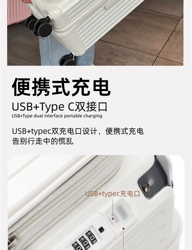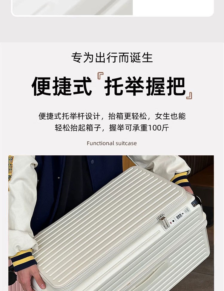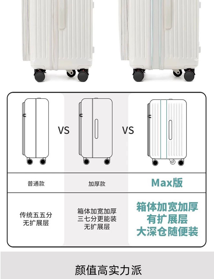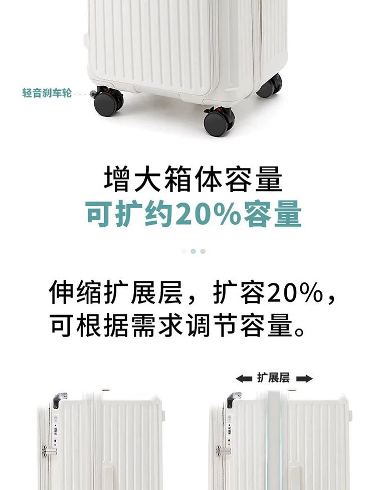 측면 개방형 뚜껑 5륜 두꺼운 트롤리 케이스 확장 가능한 대용량 가방 여성용 20inch 남성용 자동 여행 등록 케이스스토어 가기