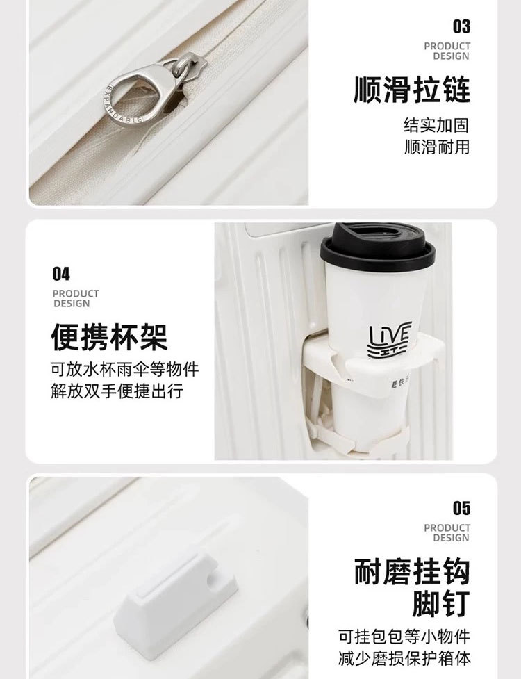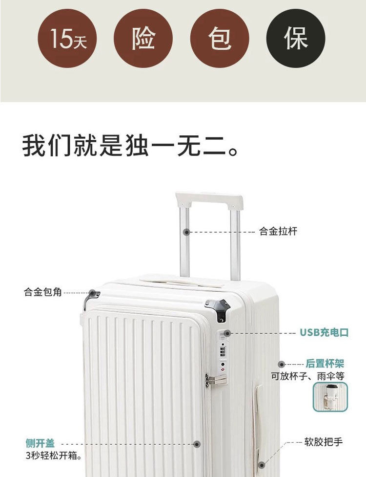 측면 개방형 뚜껑 5륜 두꺼운 트롤리 케이스 확장 가능한 대용량 가방 여성용 20inch 남성용 자동 여행 등록 케이스