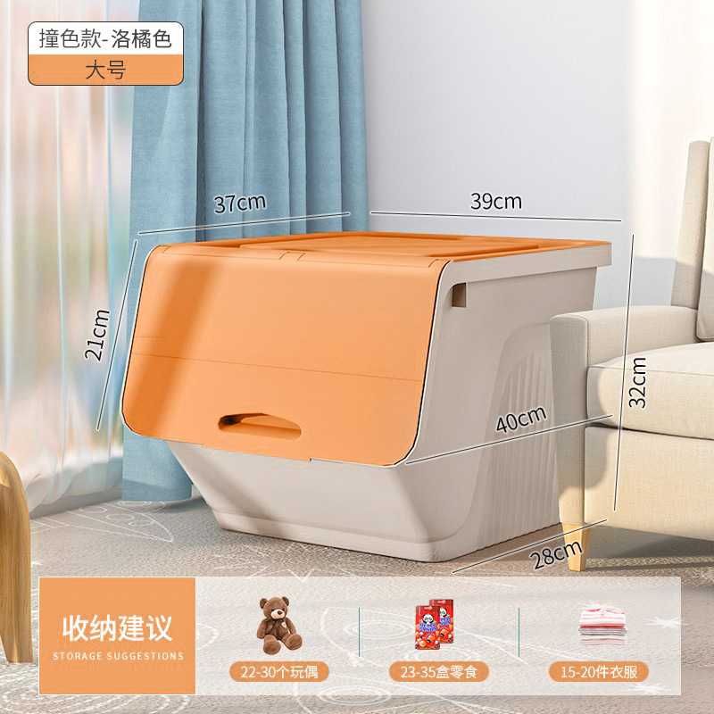 장난감 보관 상자 전면 개방형 가정용 플립 탑 보관 상자 보관 상자 어린이 간식 의류 보관 상자 보관 캐비닛