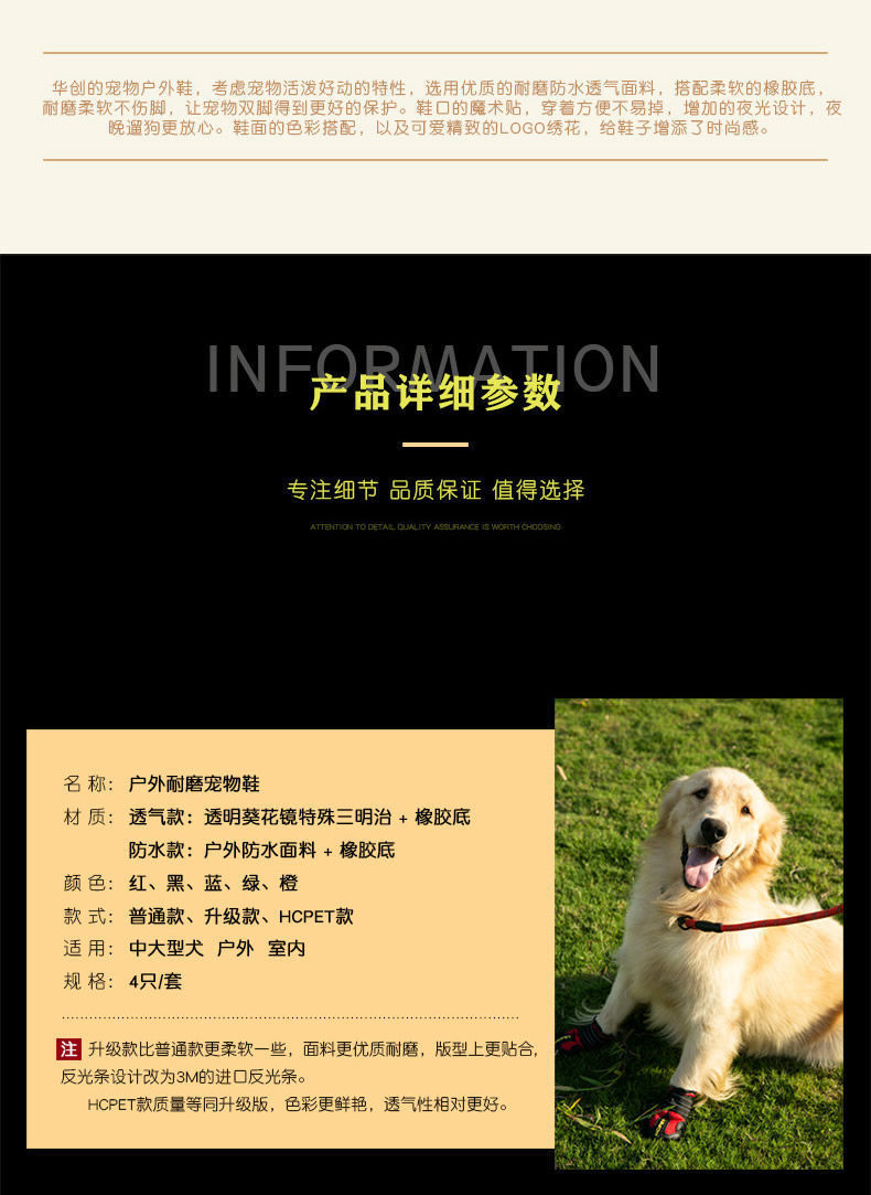 대형견 신발 방수, 미끄럼 방지, 내마모성 및 통기성 개 신발 골든 리트리버 래브라도 불독 애완 동물 신발