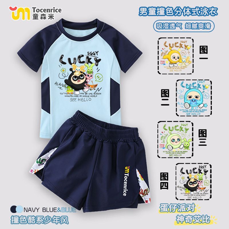 Eggboy Party Magic Abby 수영복 남자 2025 여름 새로운 스플릿 중형 및 대형 어린이 통기성 속건성 수영복