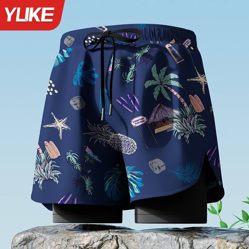 성인용 더블 레이어 수영 트렁크, 남성용 복서 스타일 수영복, 당황스러운 방지, 새로운 전문 해변 성인 수영 장비