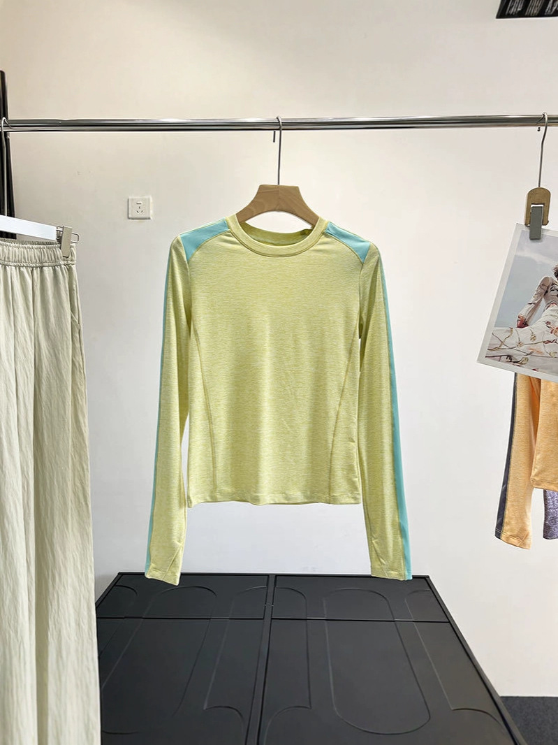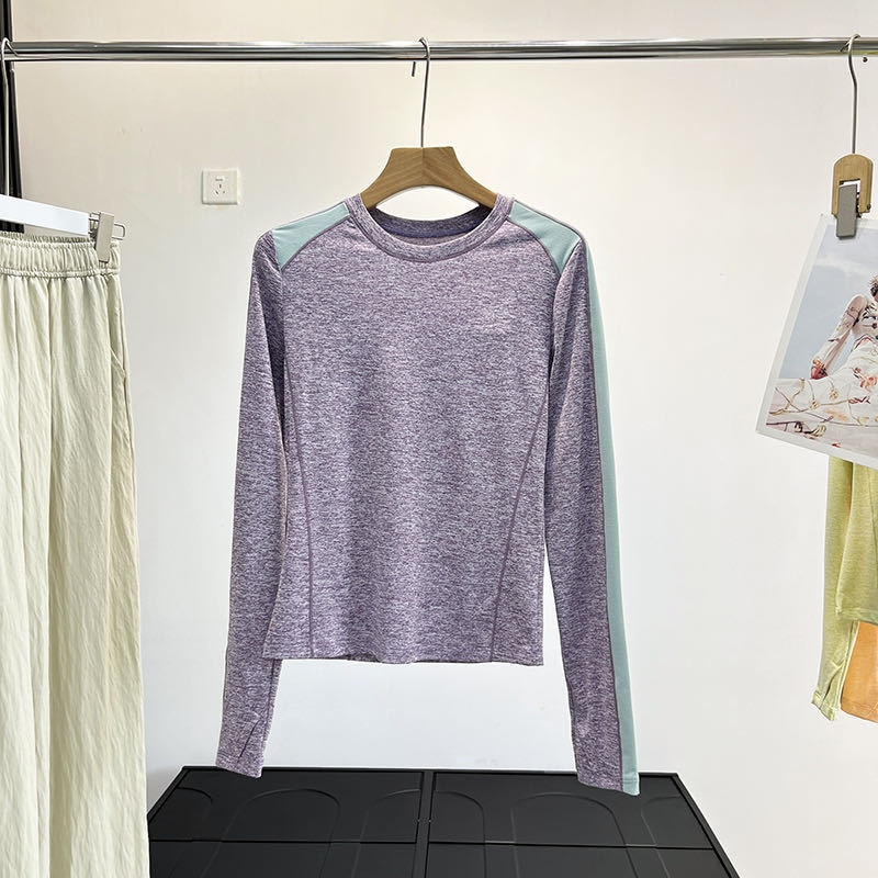 야외 수분 흡수 속건성 의류 기본 셔츠 슬림 피트 컬러 매칭 트레이닝 스포츠 긴팔 티셔츠 여성