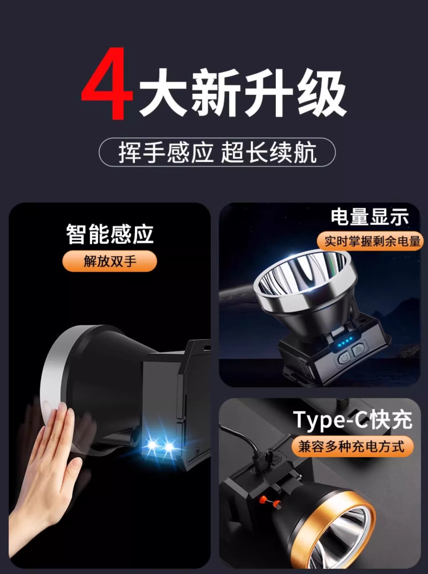 • 백색광 [폭발성 장거리] 배터리 수명 15시간◆파동 센서◆전자 디스플레이◆C형 고속 충전