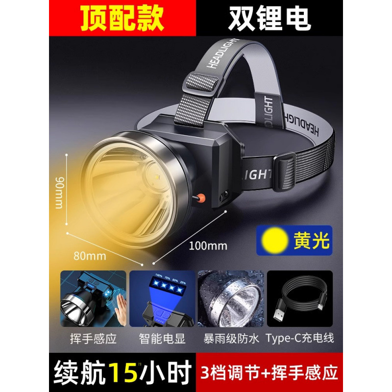 • [2025 신형 밝은 노란색 헤드라이트] 강력한 침투력★물 표면은 반사되지 않습니다.★물고기 떼를 방해하지 마세요