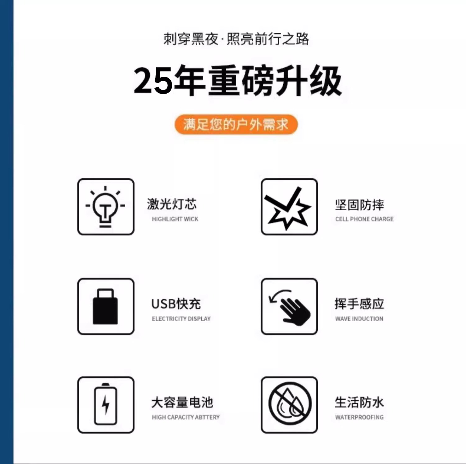 • 노란색 표시등 [밝고 강력한 침투력] 배터리 수명 15시간 ◆ 파동 센서 ◆ 전자 디스플레이 ◆ C형 고속 충전